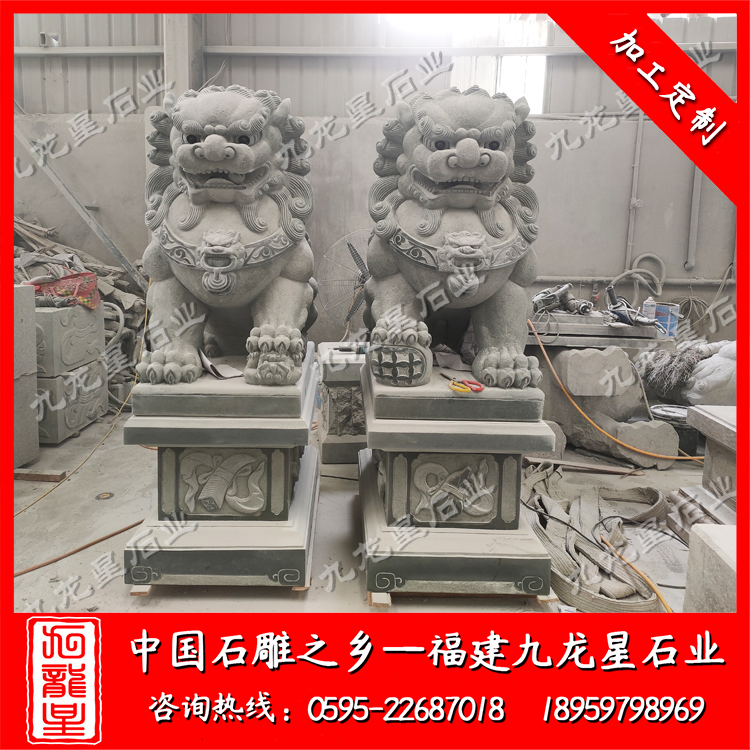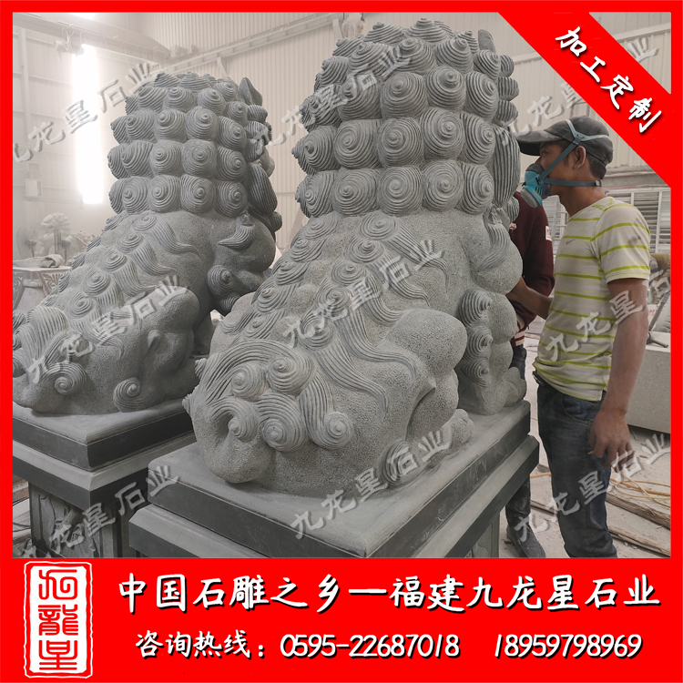 案例名稱:石雕獅子 安裝地址:云南省盈江縣興淀淀粉廠 材質:四川青(萬源青)