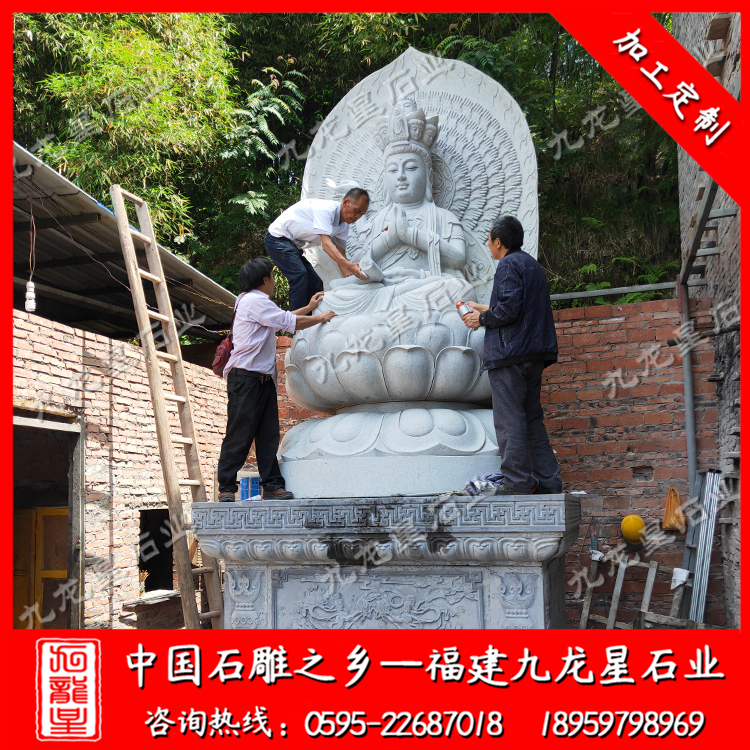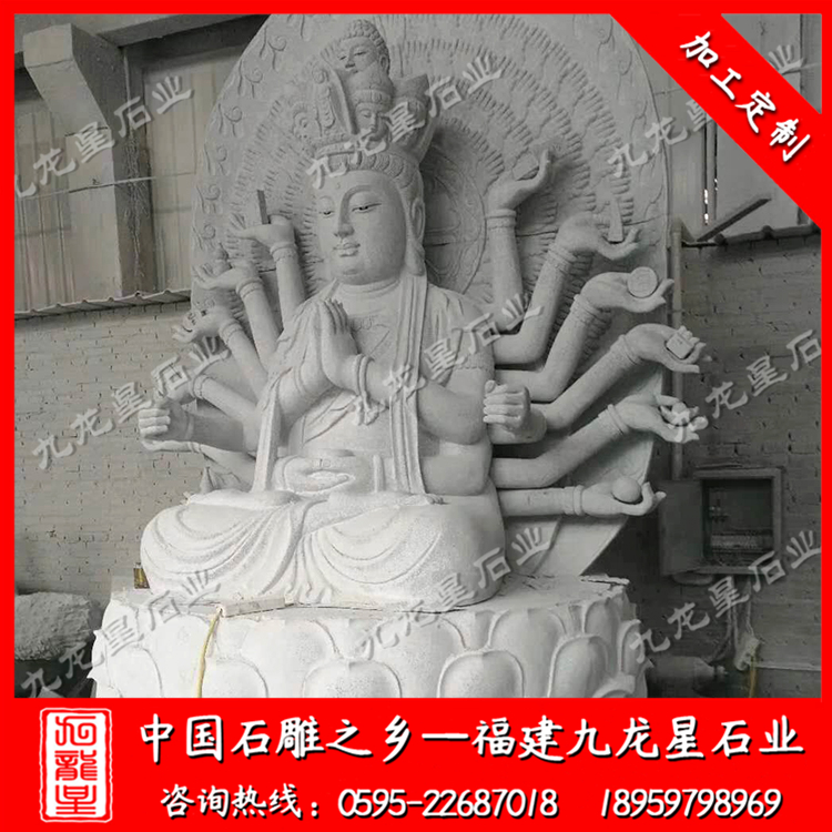 案例名稱:石雕千手觀音 安裝時間:2019.05月 地址:重慶開縣-上清寺 規格:總高3.6米 材料:芝麻白