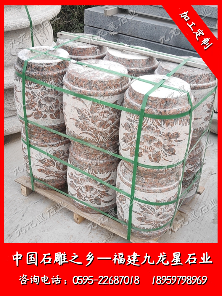 楓葉紅鼓形雕花石凳 規格:30*36 加工要求:按照圖片造型做 數量:12個