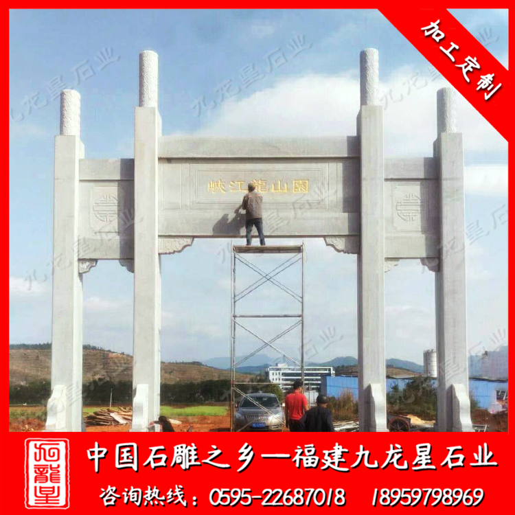石材牌坊(芝麻灰A料) 寬11m*高11m 1座