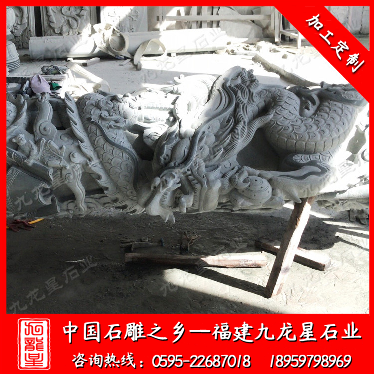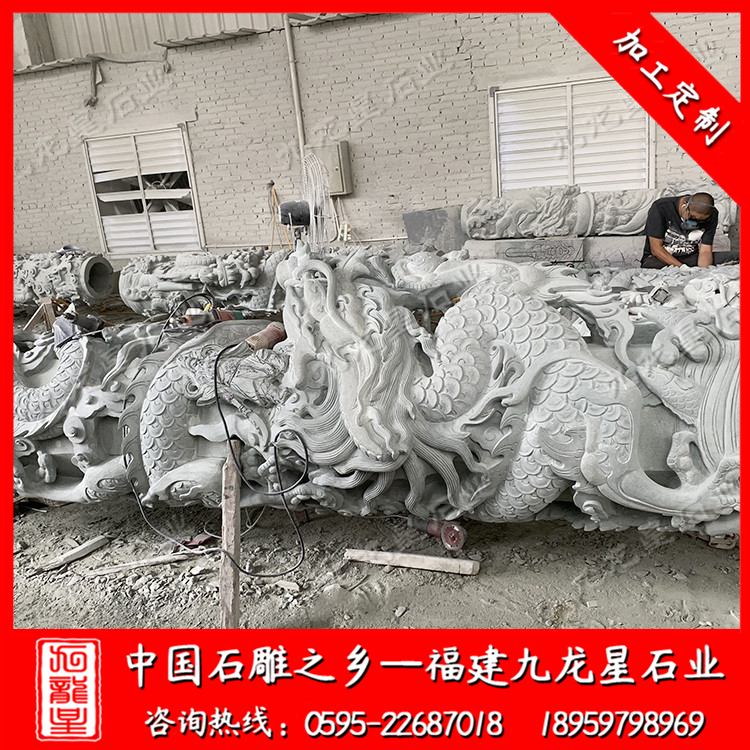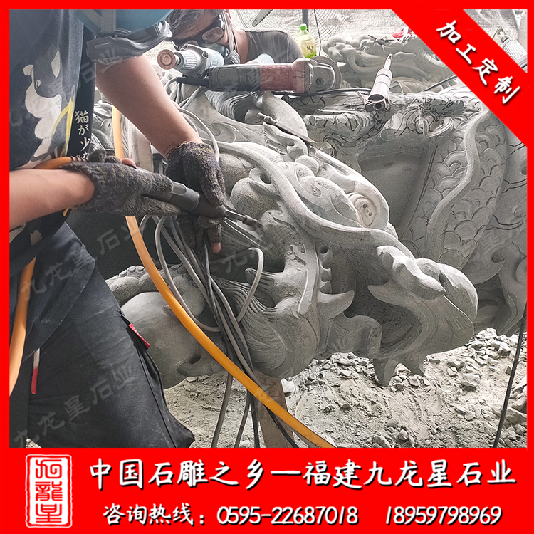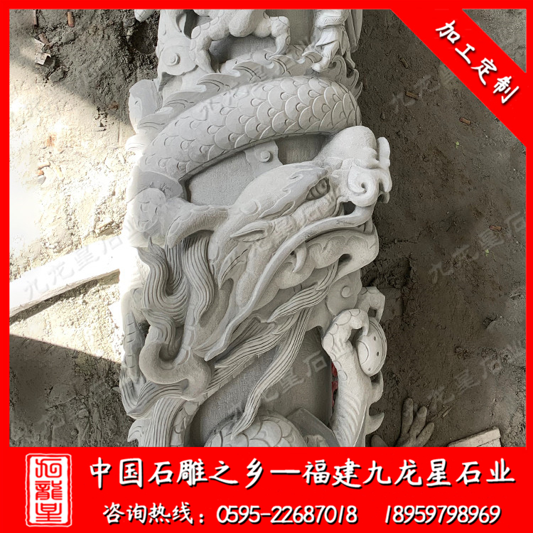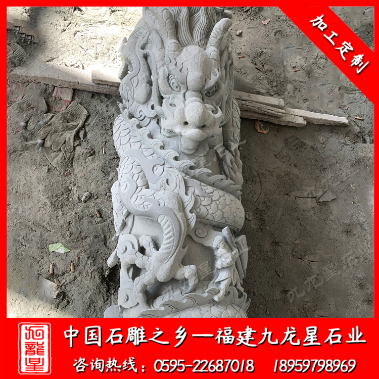 石雕八角龍柱--四川青石