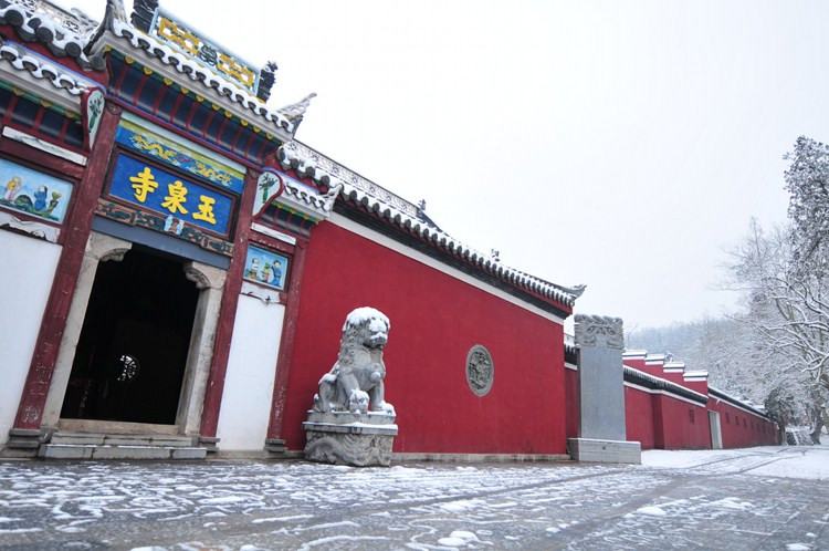 玉泉寺位于湖北省當(dāng)陽市城西南12公里的玉泉山東麓。相傳東漢建安年間,僧人普凈結(jié)廬于此。南朝后梁大定五的(559年),梁宣帝蕭察敕玉泉為“覆船山寺”。隋開皇十二年(592年),晉王楊廣應(yīng)智頭奏請(qǐng)?jiān)诖似鹚?敕名“一音”,后改為“玉泉寺”;隋開皇十四年(594年),楊廣敕封智頭為“智者禪師”,并親書“智者道場(chǎng)”匾額。唐貞年間(672——649年)僧法瑱增建;儀鳳二年(677年)唐高宗詔請(qǐng)寺僧弘景為師;后周長(zhǎng)壽三年(694年)金輪圣皇帝親授舍利并敕建七層磚塔瘞之;三朝國(guó)師神秀在寺創(chuàng)禪宗北宗。宋天禧末年(1021年)明肅皇后感慕容邂逅之恩,捐銀擴(kuò)建,改額為“景德禪寺”;崇寧時(shí)又敕為“護(hù)國(guó)寺”。元世祖、武宗、仁宗皇帝敕修。明、清屢毀屢修。1949年后又進(jìn)行了多次修葺。現(xiàn)存殿堂樓閣多具明清營(yíng)造風(fēng)貌,其間也部份保留宋、元規(guī)制遺風(fēng)。玉泉寺曾與浙江天臺(tái)國(guó)清寺、山東長(zhǎng)清靈嚴(yán)寺、江蘇南京棲霞寺并稱為“天下四絕”,鼎盛時(shí)期其規(guī)模“為樓者九,為殿者十八。三千七百僧舍”,“占地左五里、右五里、前后十里”,被譽(yù)為“三楚名山”、“荊楚叢林之冠”。玉泉寺現(xiàn)存主要殿堂有:彌勒殿、大雄寶殿、毗廬殿、韋馱殿、伽藍(lán)殿、千光堂、大悲閣、十方堂、藏經(jīng)閣、文殊樓、傳燈樓、講經(jīng)臺(tái)、般舟堂和圓通閣等。其中大雄寶殿最為雄偉瑰麗,系我國(guó)南方最大的一座古建筑。大殿重檐歇山式,建筑面積1253平方米,通高21米,面闊九部,進(jìn)深七間,梁架為抬梁穿斗式,立柱72根,斗拱154組,開花藻井,彩繪斑斕。殿前置隋大業(yè)十一年(615年)鐵鑊、元代鐵釜、鐵鐘等珍貴的大型鐵質(zhì)文物十馀件;殿側(cè)有石刻觀音畫像一通,傳為唐代畫圣吳道子手跡。寺內(nèi)古柏蒼勁,銀杏葉茂,并蒂蓮艷,桂花溢香,修竹翠叢,莊嚴(yán)謐靜。