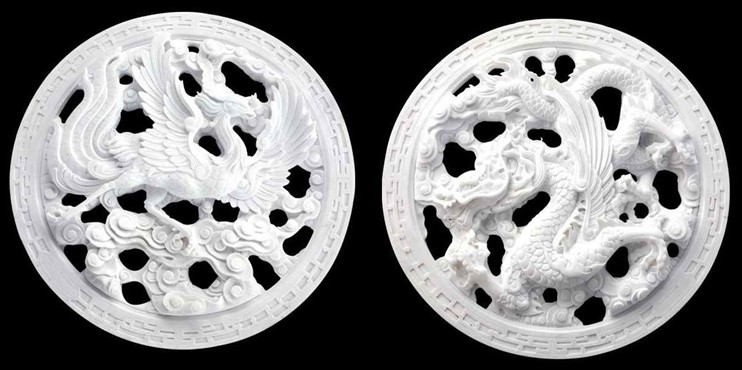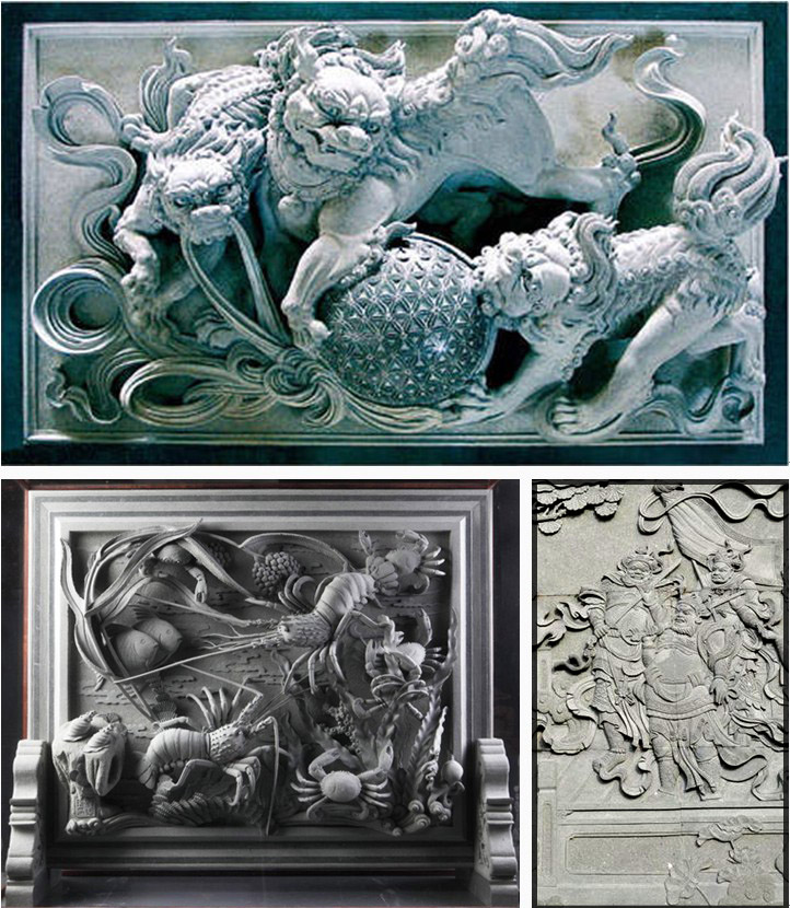 由建筑的照壁借鑒演化而來,常常與浮雕結合,廣泛運用在建筑裝飾上,它具有既美觀又堅固的藝術特點,具有 “圖必有意,意必吉祥”的藝術效果。
