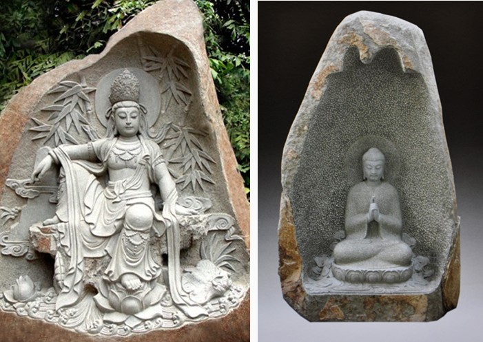 即立體摹擬造型,單體存在,既有以單一石塊雕塑的,也有由多塊石料組合而成的。