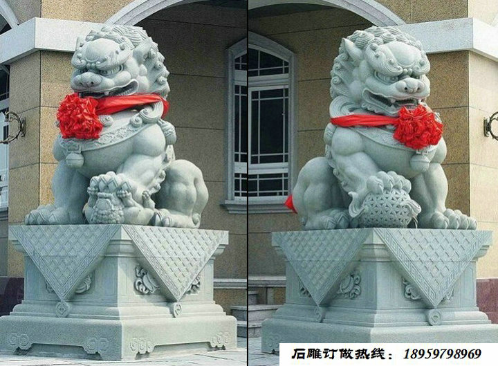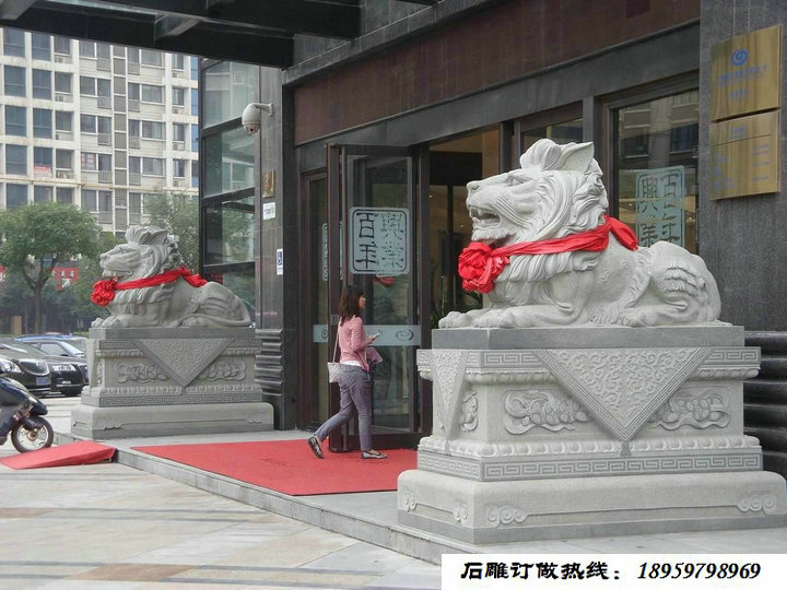 石雕獅子威風凜凜,威猛霸氣,鎮魔驅煞,祁佑生財。石雕獅子充分體現了中華民族的威嚴自尊與宏偉大氣。它象征著一種富貴吉祥和神圣不可侵犯的氣勢,是每一個有創業進取精神的企業首選的鎮家之寶。其不但可以避邪,且可帶來祥瑞之氣,能解除多種形煞,亦加強官威或屋主之陽氣,如果窗口見到不利之沖克,可放一對石獅面向口可化煞,且有生權之意。凡是以口維生之行業,如律師、藝員等,可在辦公室內擺放一對聲威,有助于生財。