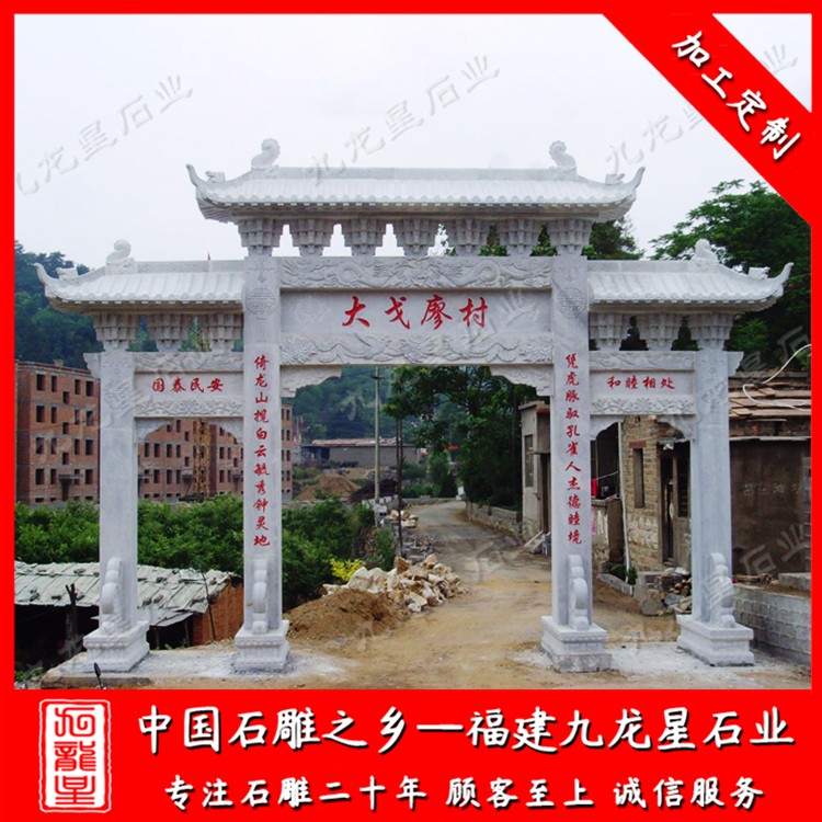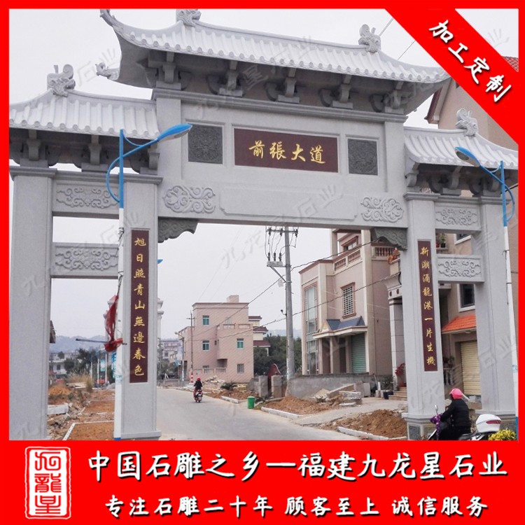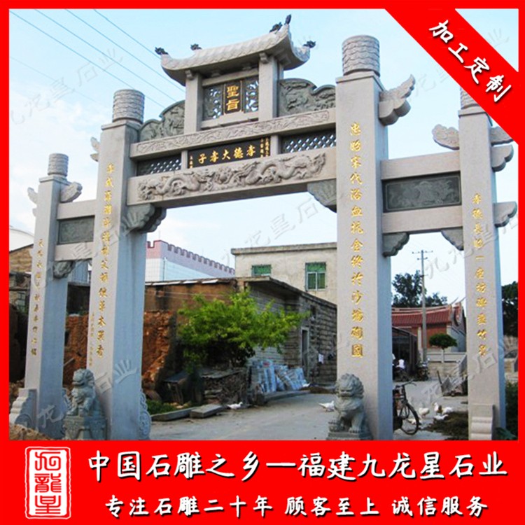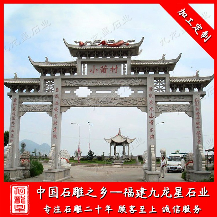石雕牌坊(預(yù)算村莊入口石牌坊價(jià)格需要考慮的因素)——九龍星石業(yè)
