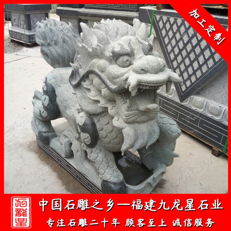 石雕麒麟廠家很多集中在福建惠安,惠安是我國的石雕之鄉,雕刻出來的石雕麒麟紋路流暢,生動形象。福建九龍星石業發展有限公司是惠安石雕麒麟廠家,從事石雕麒麟神獸加工雕刻制作20多年,石雕麒麟圖片、石雕麒麟款式多樣,制作經驗豐富,雕刻工藝jing湛,材質可以為花崗巖、青石、漢白玉等等,望廣大新老客戶前來參觀考察和選購。