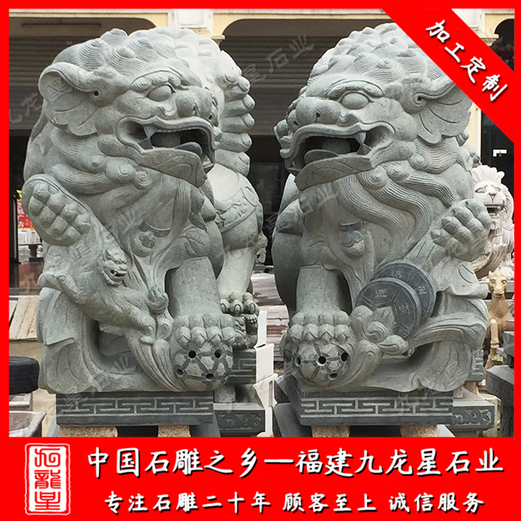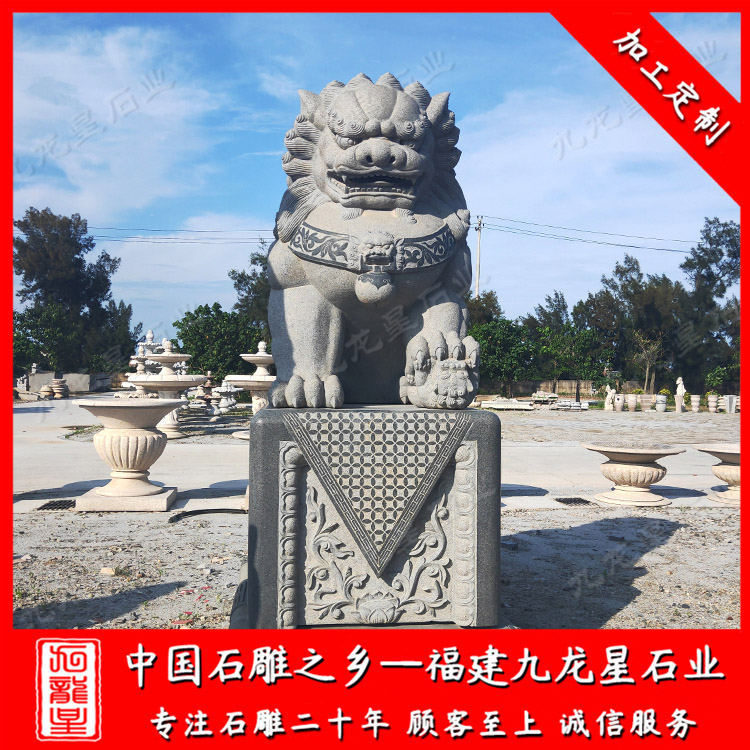 石雕獅子(石獅子雕塑廠家供應石刻石獅子門口石雕獅子)——九龍星石業