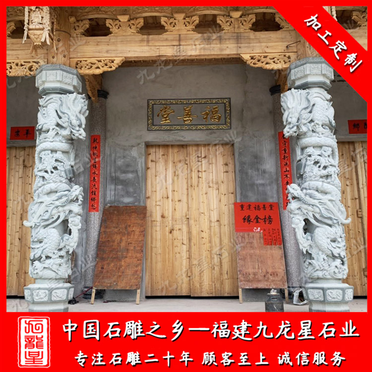 石雕龍柱(石雕龍柱廠家供應寺廟青石龍柱祠堂石雕龍柱)——九龍星石業