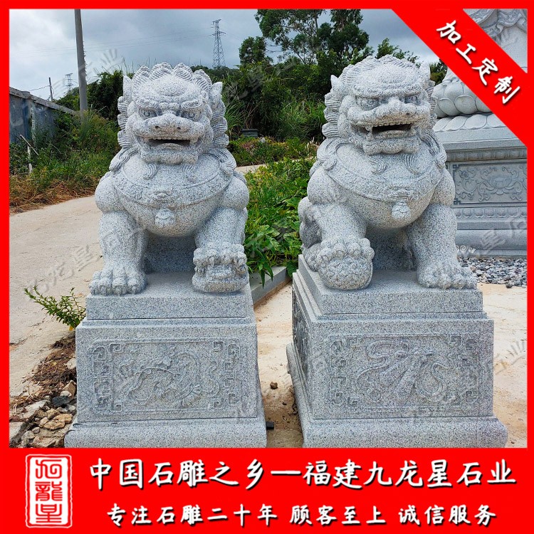 石雕獅子(石獅子廠家供應(yīng)酒店門口石獅子寺廟石獅子別墅門口石獅子)——九龍星石業(yè)