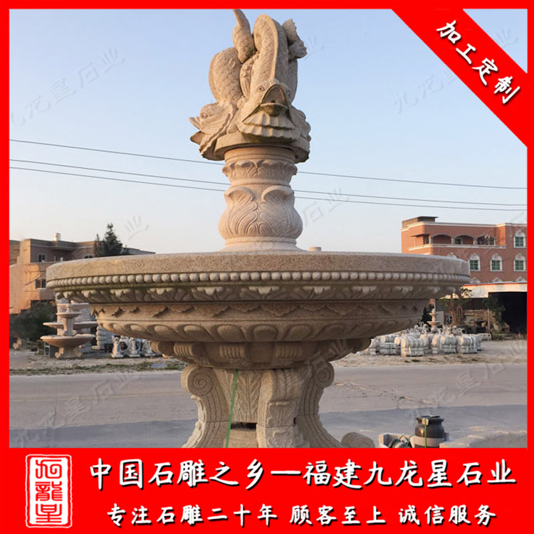 石材噴泉水景廠家、石雕噴泉水缽廠家很多集中在福建惠安、因為福建惠安是石雕之鄉,九龍星石業也位于福建惠安,從事石雕噴泉水景二十多年,石材噴泉水景、石雕噴泉水缽款式多樣,歡迎咨詢我們,我們會發您一些適合您的石雕噴泉圖片,并為你做出報價。