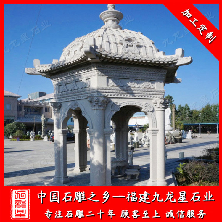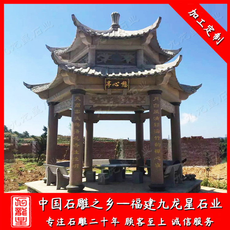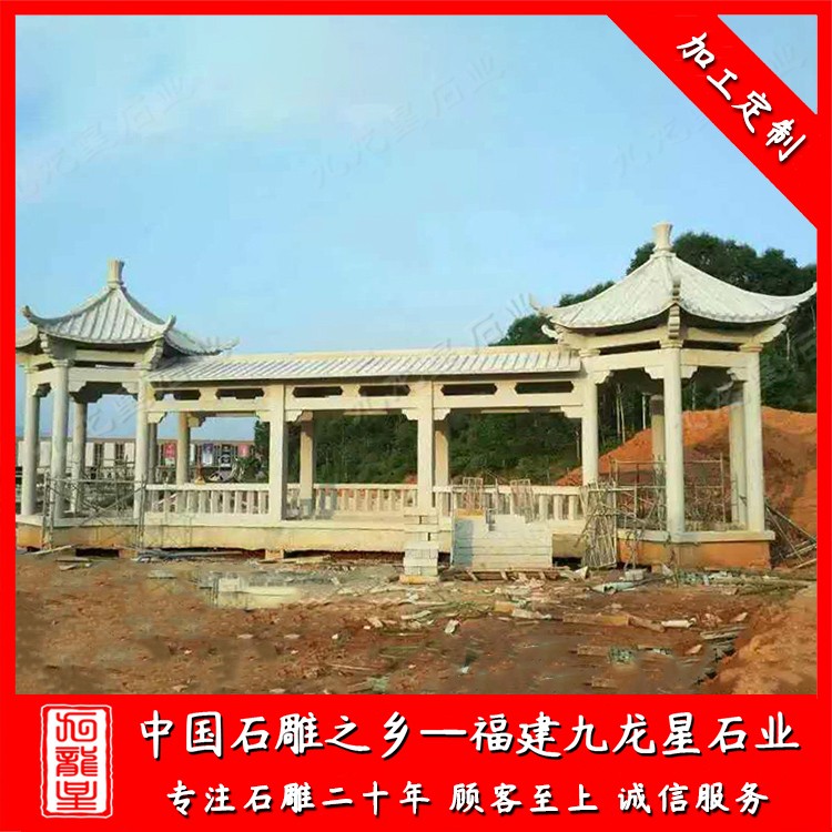 石雕涼亭長廊廠家 批發(fā)仿古六角石亭子——九龍星石業(yè)
