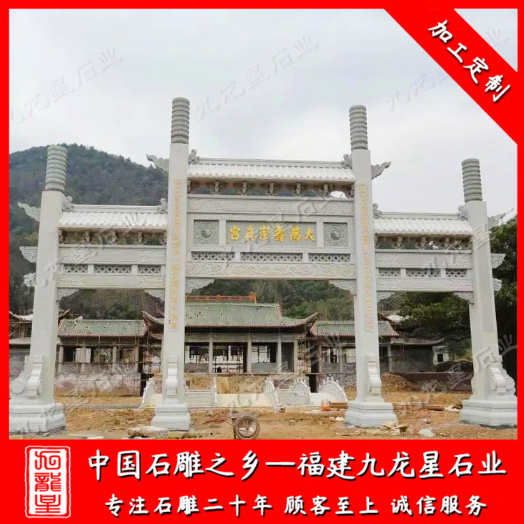 以上是小編總結(jié)的三種村莊入口三門四柱石牌坊款式供大家參考。