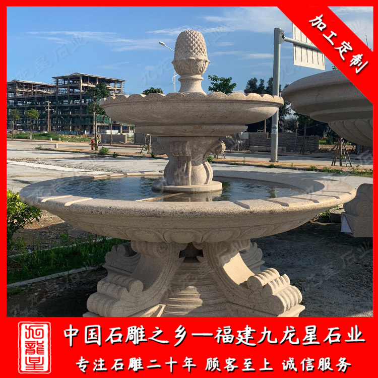 黃銹石石雕水缽噴泉圖片款式也是十分的多。安裝大盤的個數分,有單層黃銹石石雕噴泉、雙層黃銹石噴泉、三層銹石水缽噴泉。安裝款式的風格分有歐式水缽雕塑和中式噴泉水缽這兩大類。