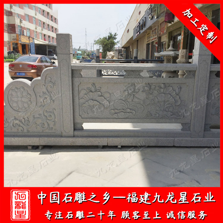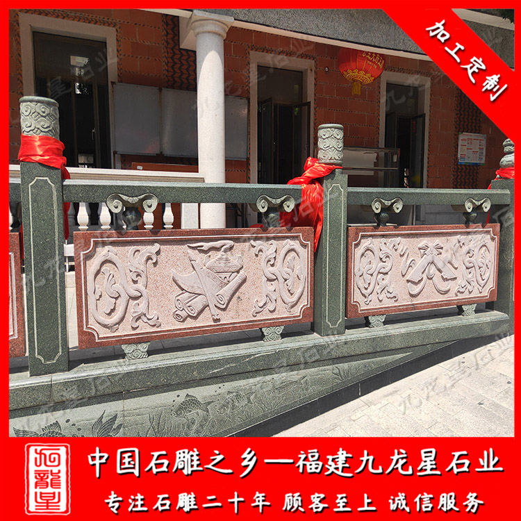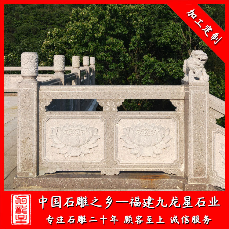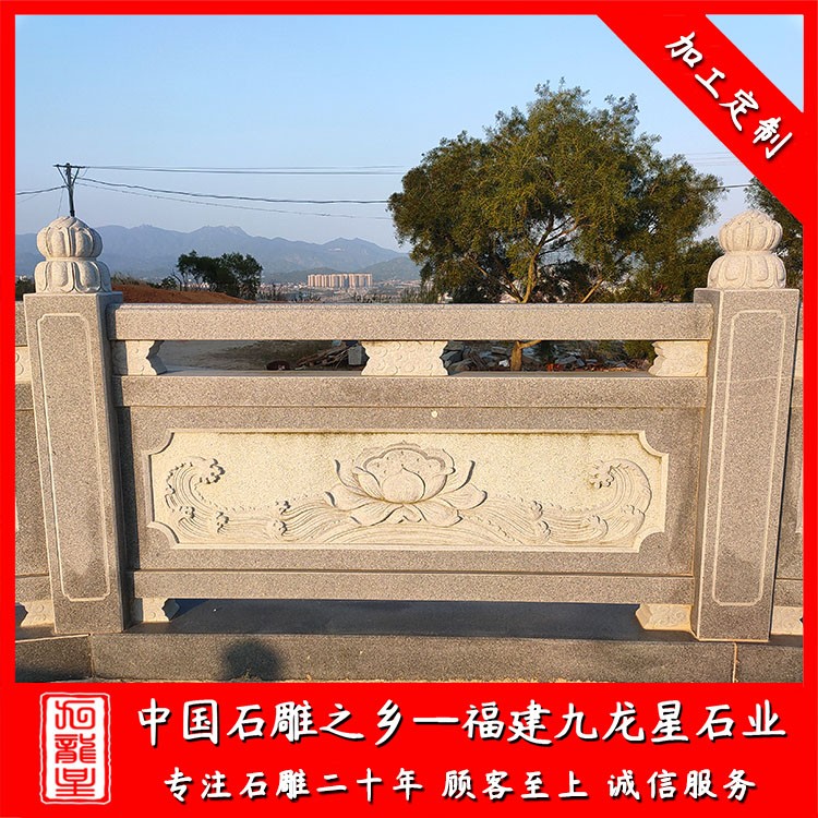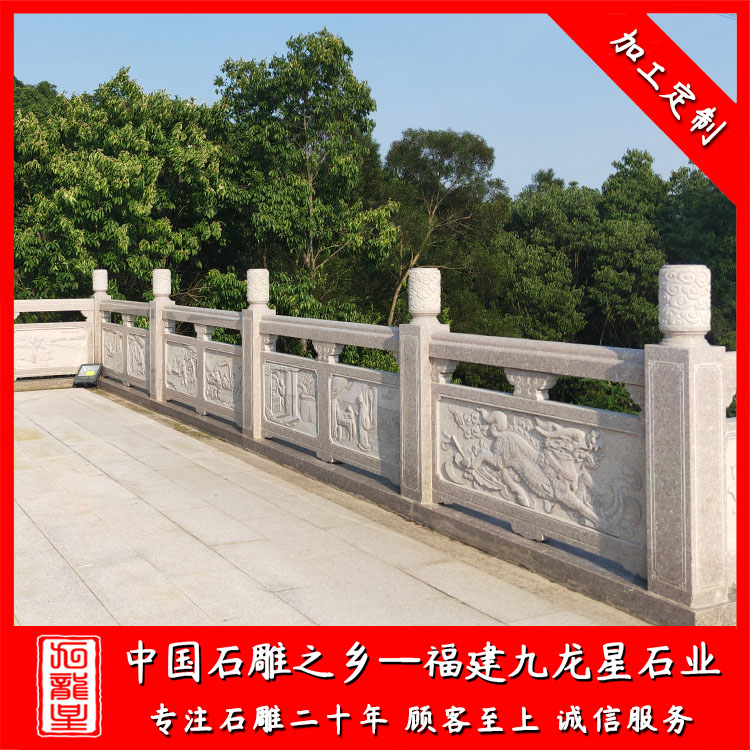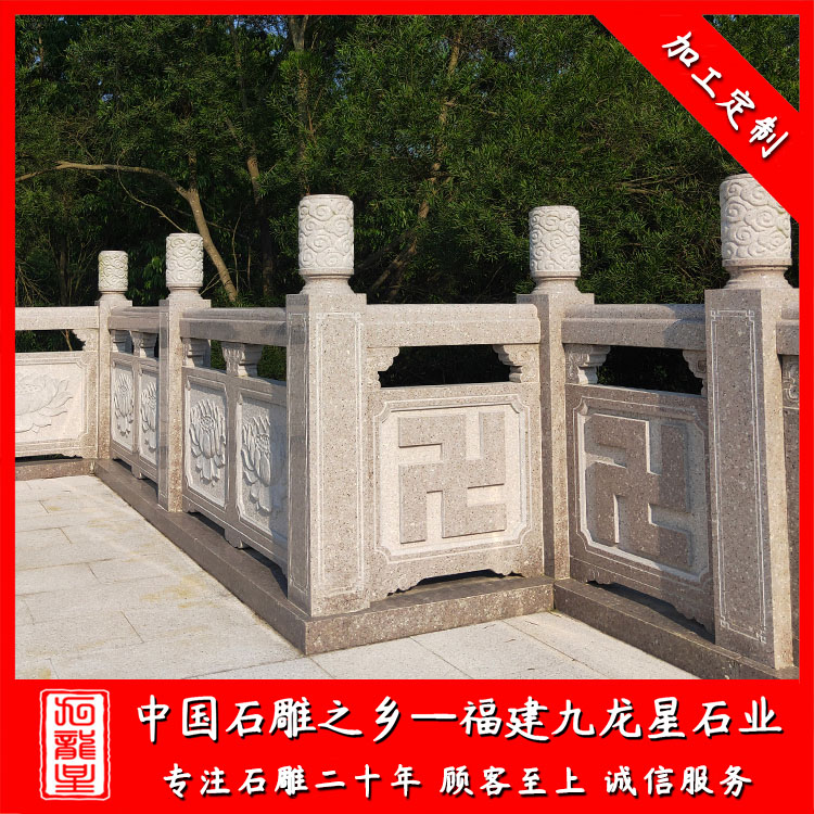 石材欄桿在我們的生活中十分常見,河道石材欄桿、橋梁石欄桿、寺廟石材欄桿護欄、祠堂石材欄桿、景區(qū)石雕欄桿、別墅石材欄桿、陽臺石欄桿等等。花崗巖石欄桿廠家雕刻 石材欄桿欄板圖案有很多,文章中的石材欄桿欄板圖案圖片供大家欣賞參考,可找九龍星石業(yè)定做。