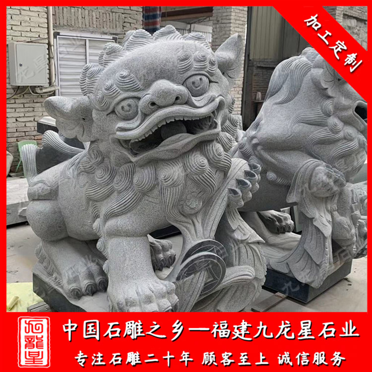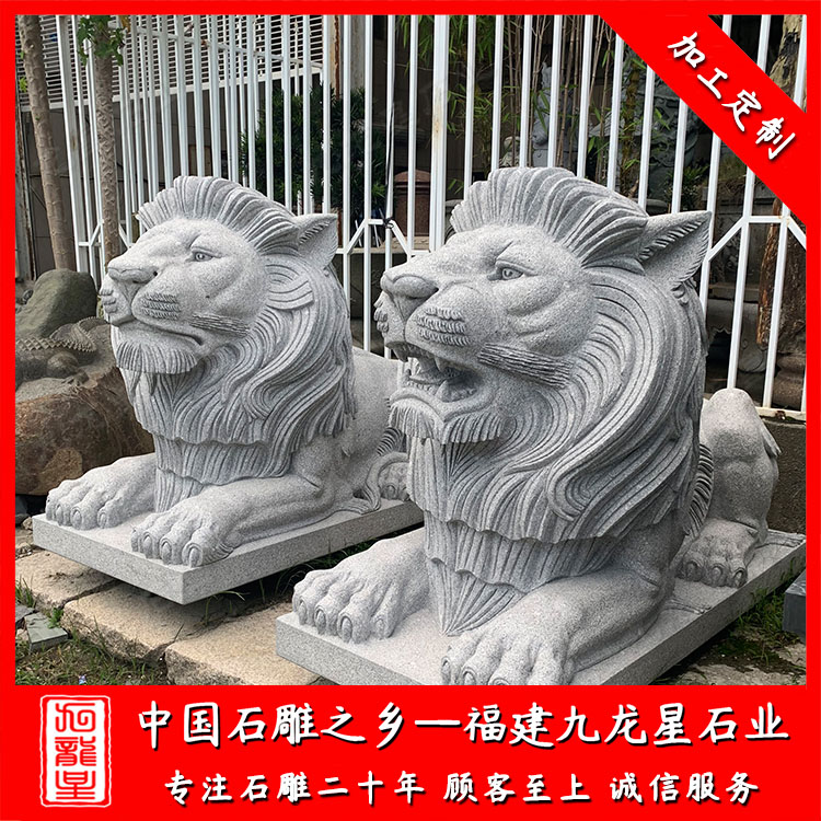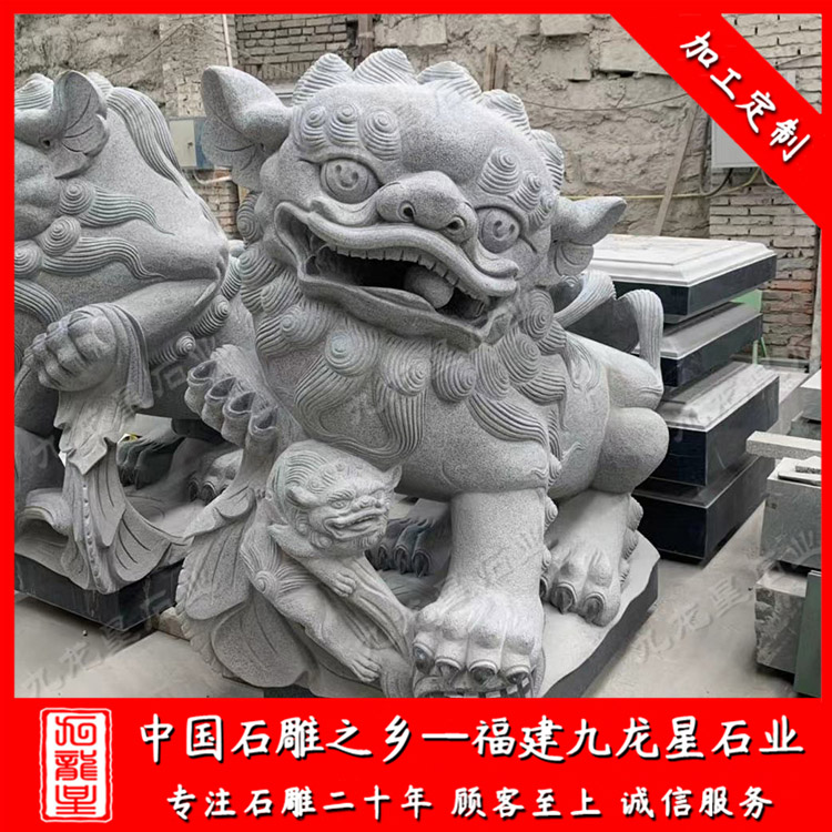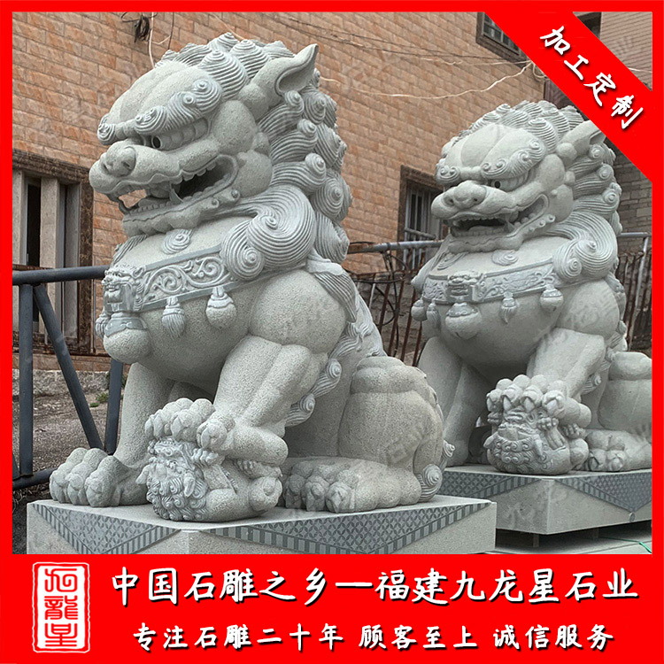 在很多地方我們都會看到門口擺放石雕獅子一對、例如酒店大門口、銀行大門口、工廠廠房門口、寺廟景區門口等等。一對門口石雕獅子定做的高度通常為2米、2.5米、2.8米、3米、1.8米、1米等。