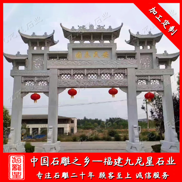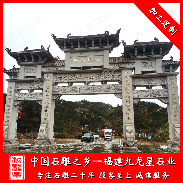 新農村的建設中有很多村莊會在村口設計建造一座農村村口石牌坊,或采用花崗巖雕刻或采用青石加工制作。