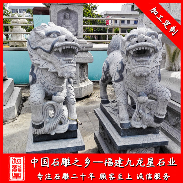 其二,石雕麒麟加工常用的材質還有花崗巖中的芝麻黑。芝麻黑材質化學穩定性好、表面硬度大、抗壓強度也比較高并且吸水率低。雕刻加工好的芝麻黑材質的石雕麒麟簡約大方。因此,也有很多人選用芝麻黑來加工石雕麒麟。