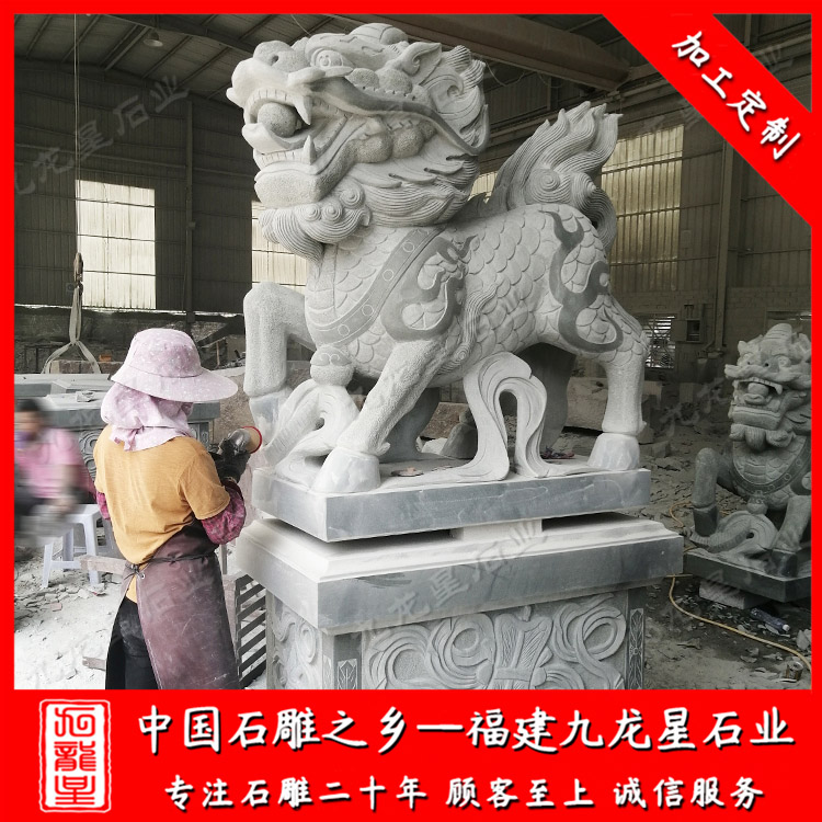 石雕麒麟被人們稱為是一種吉祥的瑞獸,時常被人們定做擺放在大門口等場所。加工精美的石雕麒麟不僅寓意美好,也為所擺放之處增添風景。那么,石雕麒麟加工常用的材質有哪些呢?