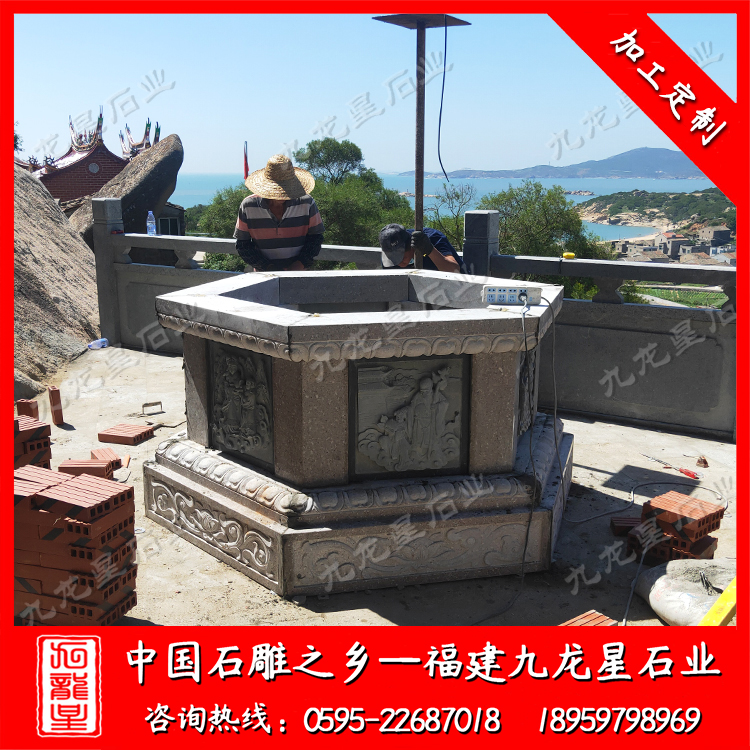 福州平潭大福村一片瓦寺--石雕元寶爐