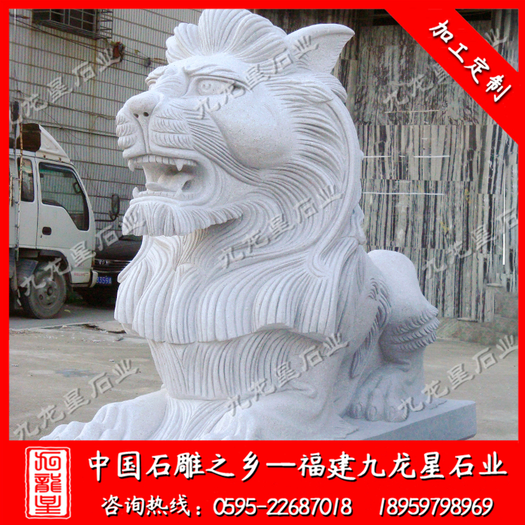 惠安石雕獅子為什么會是石獅子成為鎮宅的法器,而不是和獅子一樣的貓科動物老虎呢?得到的永遠不會珍惜,得不到的永遠都是好的,這是人性的弱點,也正是這一弱點,讓同屬于貓科動物的老虎走下神壇,并不會得到炎黃子孫后人多少的尊重,其一,老虎吃了太多的人,人們雖然對其敬畏,但是更多的是憤怒和厭惡,古人常以大蟲相稱。其二,在人們長時間與其斗爭過程中掌握了不少可以降服和對付的方法。其三,老虎缺少了佛教的影響力,獅子如果因為獅子吼和文殊菩薩的坐騎而被人謹記,那么老虎完全沒有這樣的宗教文化氛圍的支撐。所以獅子走向了信仰的神物。當然對于石雕來說,統一顏色的獅子遠比老虎的花紋,形態容易雕刻,懂得雕刻的人應該是非常的清楚,獅子造型簡單,款式變化多,一般加工起來容易,相對身體的塑造比較簡單,但是對于老虎來說,花紋就是非常大的困難,其次老虎的形態因為經常的被人看到,太浮夸的表情和動作都可能會被人詬病。故此選擇石雕獅子似乎又是必然的選擇了。
