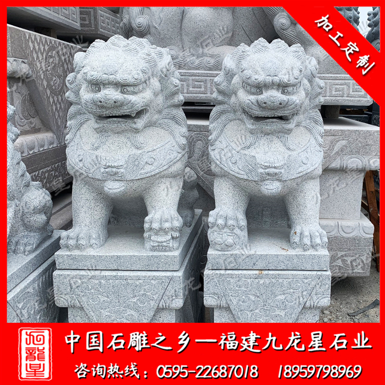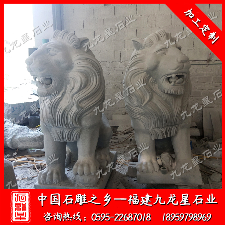 石雕獅子(大門口擺放石獅子 制作石雕獅子廠家)——九龍星石業