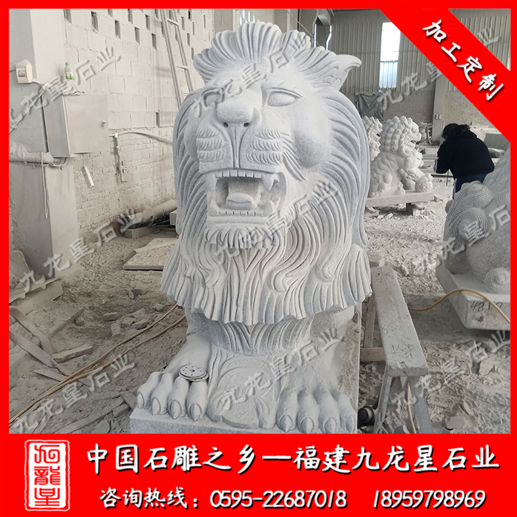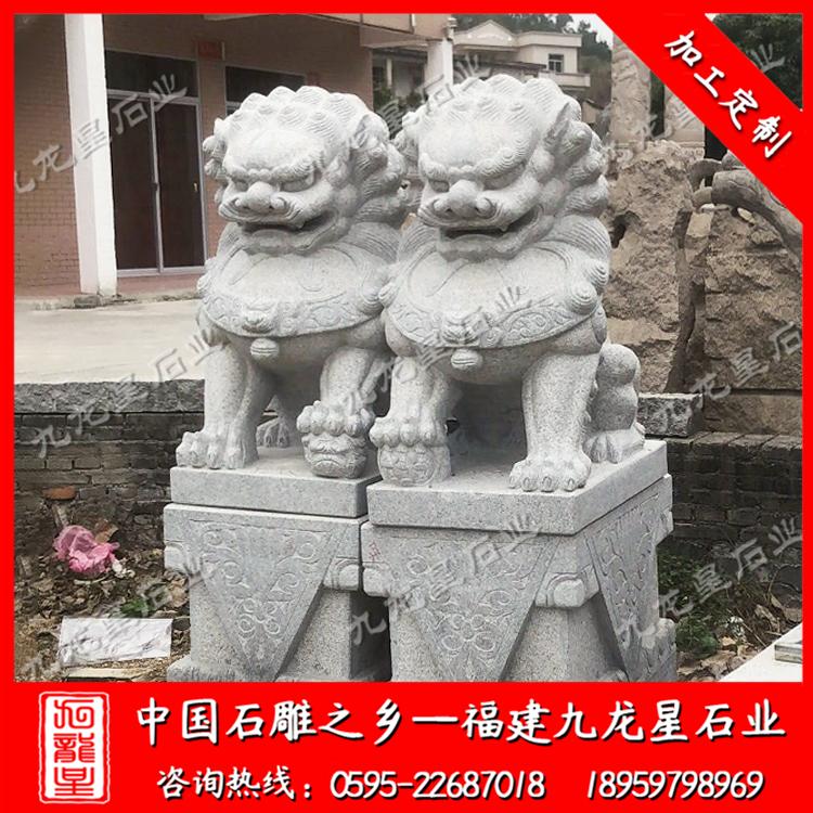 石雕獅子威風凜凜、威猛霸氣、鎮魔驅煞、祁佑生財,充分體現了中華民族的威嚴自尊與宏偉大氣,它象征著一種富貴吉祥和神圣不可侵犯的氣勢,是每一個有創業進取精神的企業所首選的鎮宅之寶,經過無數能工巧匠的辛勤創造,石雕獅子的工藝造型體現出當代藝人的卓越才能。