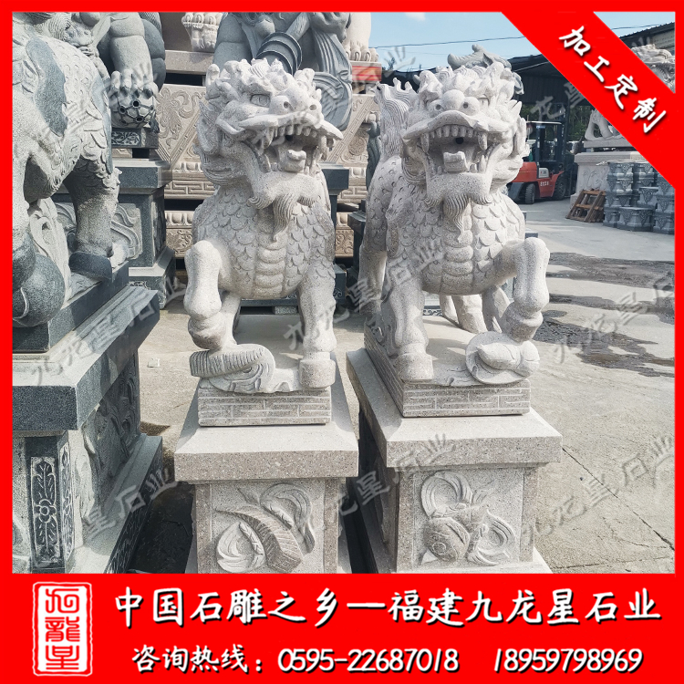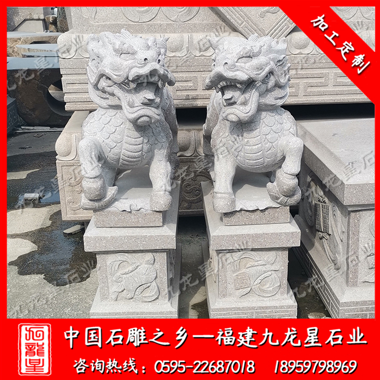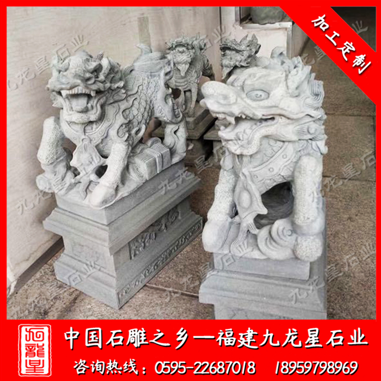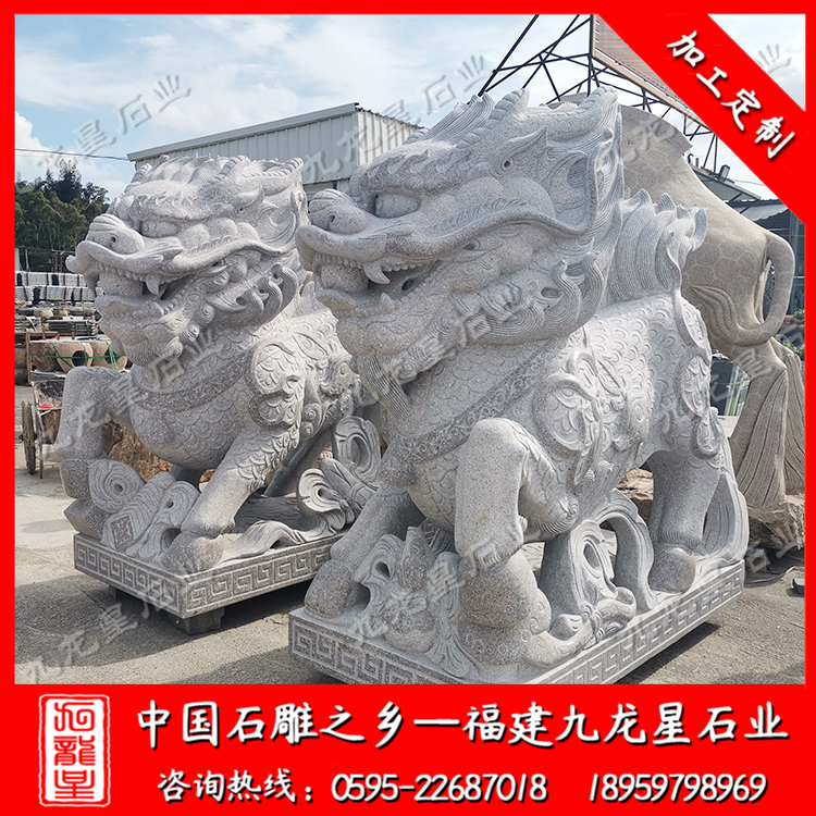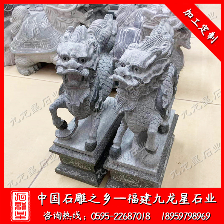 石雕麒麟是我們比較常見(jiàn)的石雕動(dòng)物之一,鎮(zhèn)宅石雕麒麟在日常生活當(dāng)中比較常見(jiàn),麒麟是一種瑞獸,也是非常受到人們的歡迎,人們崇拜麒麟,往往稱贊女子討得好丈夫生得好兒子為鳳夫麟子,因此,麒麟也成為祝賀他人能生養(yǎng)有賢才的子嗣之送子神靈,稱麒麟送子,為求子孫賢達(dá);在居家廳堂大門(mén)上描繪、張掛麒麟口銜寶劍圖以寓辟邪納吉。