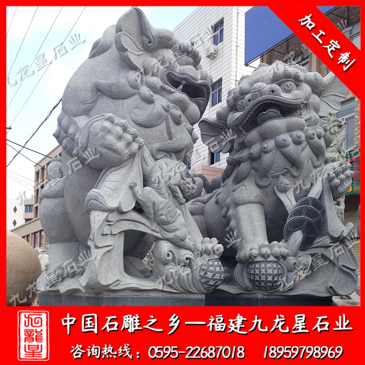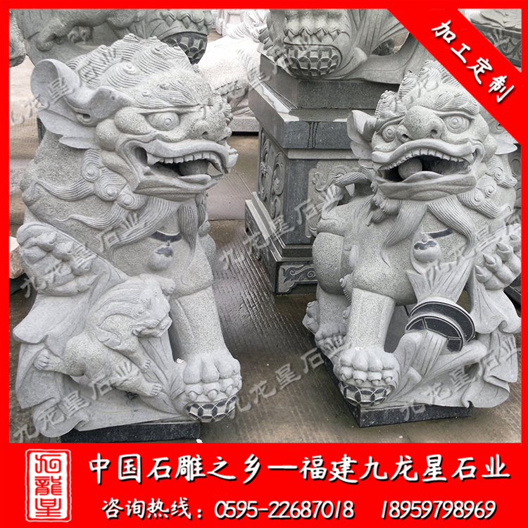 石雕獅子(石雕門獅子 花崗巖石獅子 擺放獅子塑像)——九龍星石業
