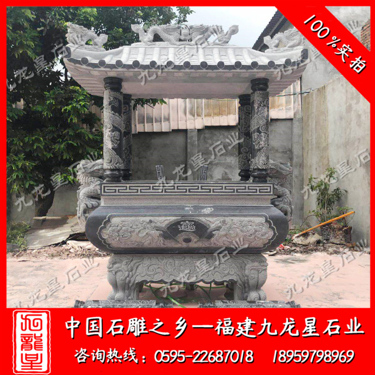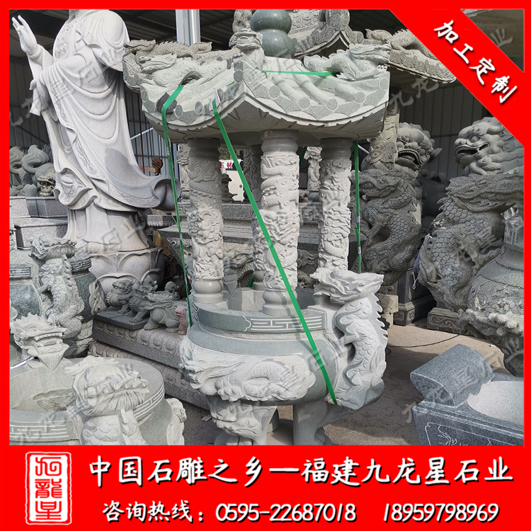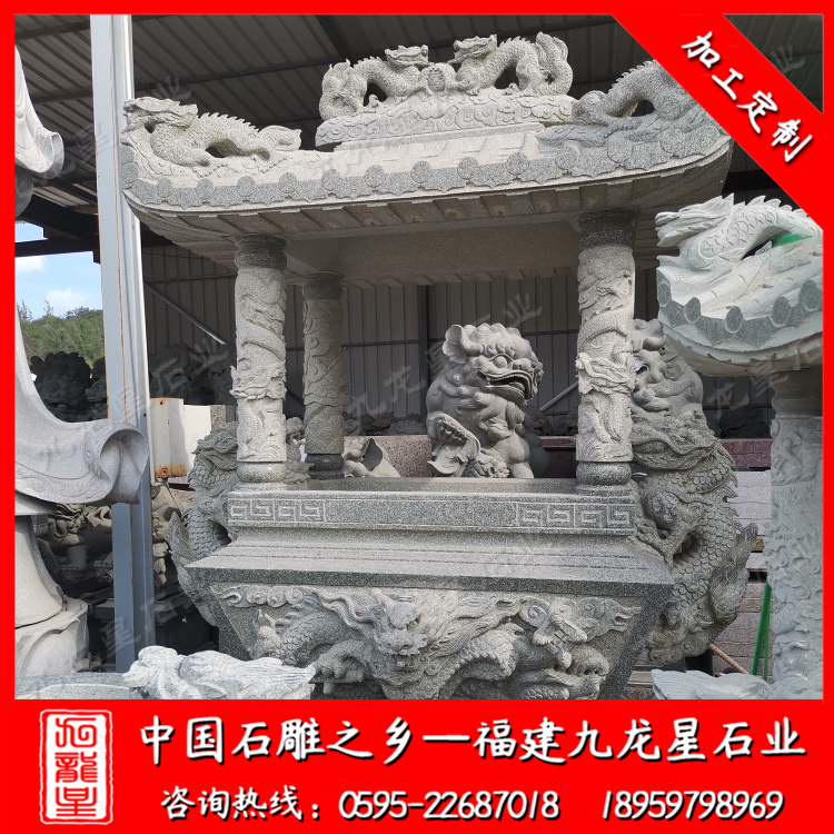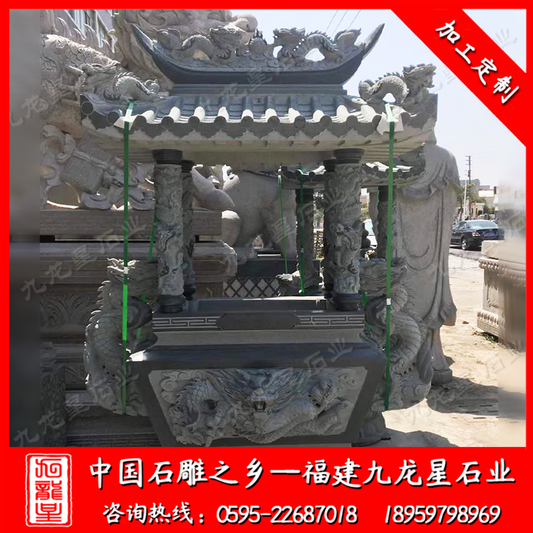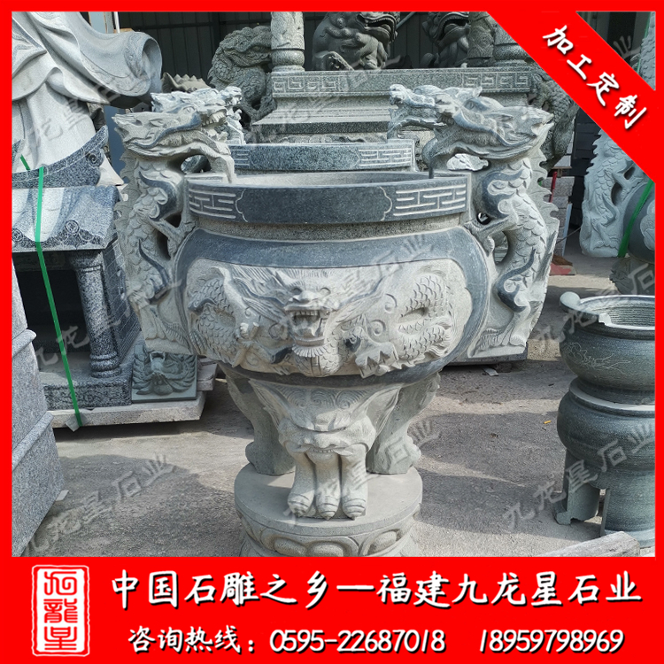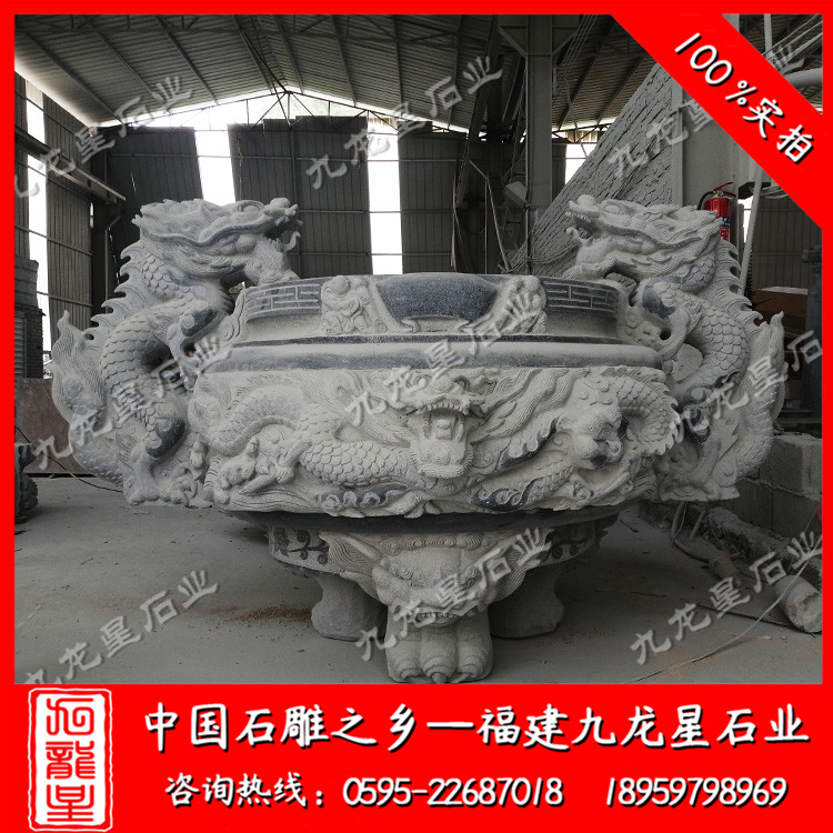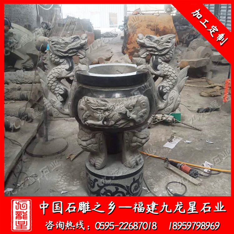 石雕香爐(寺廟石雕香爐 青石石香爐 石雕雙龍香爐)——九龍星石業(yè)