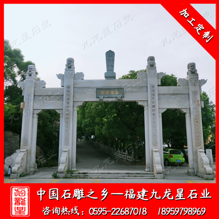 其實也就是將一些含義吉祥寓意的圖案或者是人物故事雕刻在石牌樓中,從而達到宣傳或者是陶冶以及教育的目的,同時也增加了石牌樓更深一層的意義。定制加工石牌樓如果想要質量好、有保障,價格適中那么選擇大型廠家的費用可以更加優惠一些,保證高性價比,那么肯定還是應該聯系上廠家。其實如果我們能夠直接聯系上大型廠家,想要保障好價格優惠也并不是什么困難的事情,只需要確定好了價格的合理性,其實還是對我們非常有幫助的。而石牌樓廠家的實際報價情況還是應該提前來進行確認,保證高性價比對我們來講也是更加有利的。大型廠家直接提供優惠的石材大型廠家一般都是手中有大量的石材,而且定制加工石牌樓肯定也會要考慮到石材的情況才行,這樣就可以讓我們知道具體的價格情。