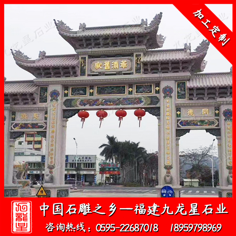 石雕牌坊(三門石雕牌坊廠家 農村石牌樓加工制作)——九龍星石業