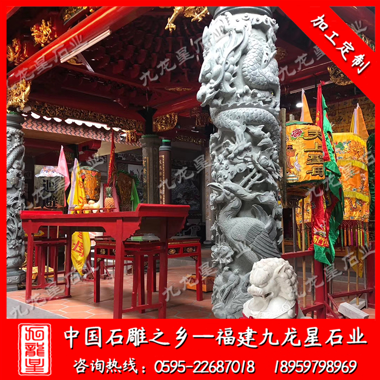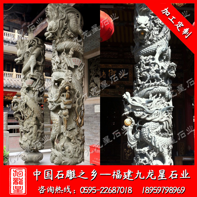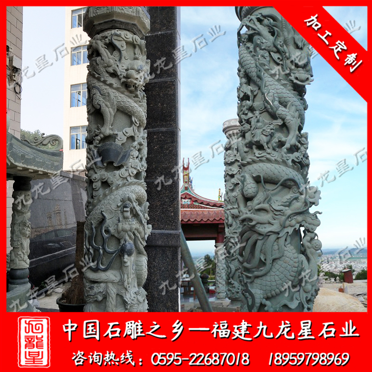 石雕龍柱(石雕蟠龍柱定制廠家 寺廟青石龍柱雕刻)——九龍星石業