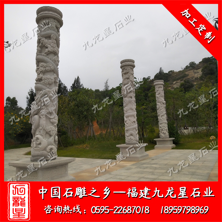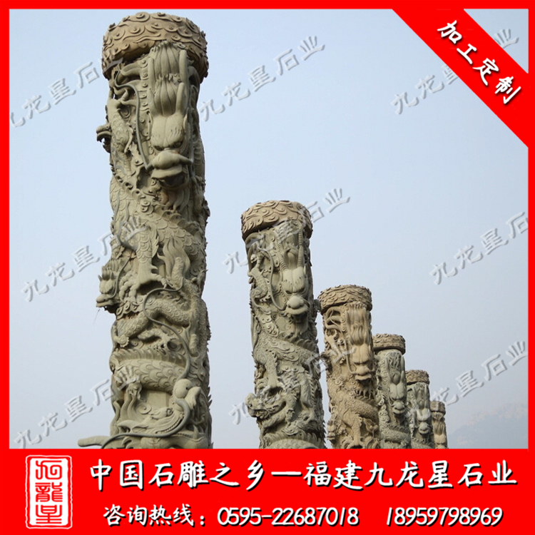 石雕龍柱(寺廟石雕龍柱 浮雕石龍柱 廣場石柱子)——九龍星石業