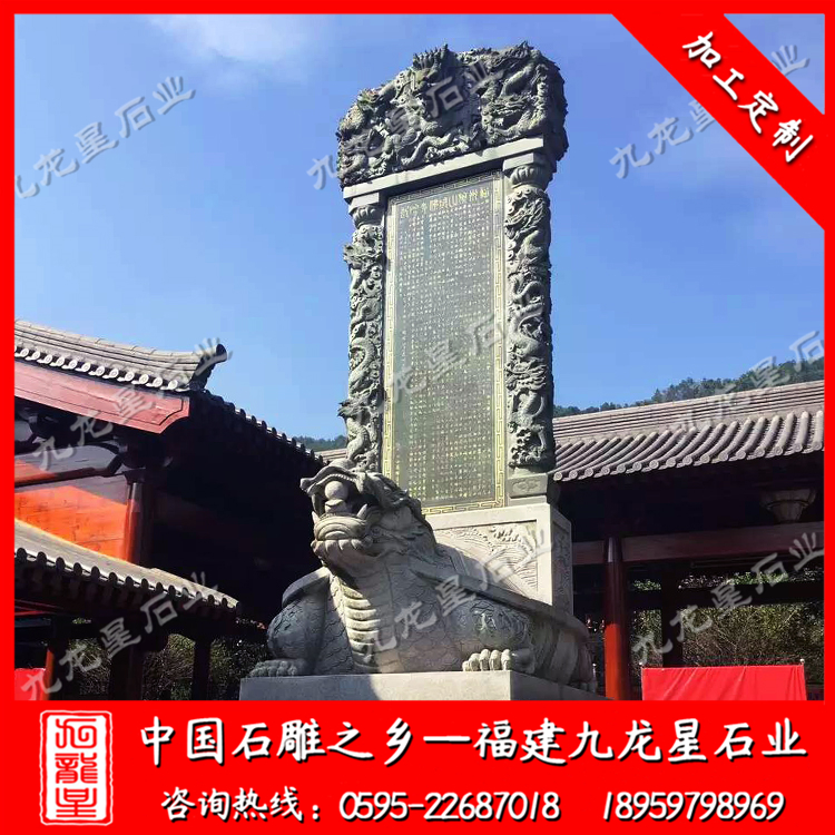 石雕龜馱碑(石雕龜馱碑廠家 寺廟功德碑 青石龍頭龜雕塑)——九龍星石業(yè)