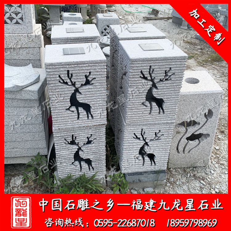 6.基礎(chǔ):石燈籠下部。以六邊形和圓形為主流,也有以瑞獸造型為基座。