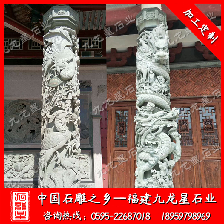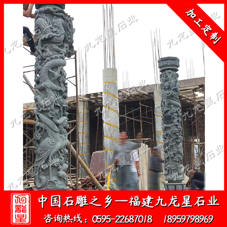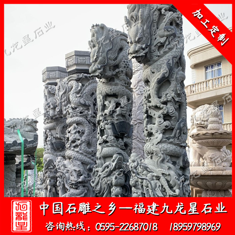 石雕龍柱(石雕盤(pán)龍柱廠家 青石龍柱雕刻 石雕圖騰柱)——九龍星石業(yè)