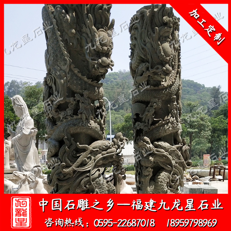 石雕龍柱(石雕龍柱圖片大全 石雕盤龍柱多少錢)——九龍星石業(yè)
