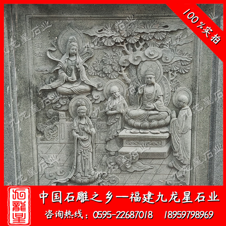 青石制作出來的浮雕無論是使用在室內還是室外,即使放了千年,染上了青苔,兩種顏色相近,這也只會增添浮雕的韻味,而不是讓人感覺到很臟。而且青石比較素雅,與佛教的清靜無為非常相稱。當然,由于青石的原料價格普遍偏貴,有些經濟條件稍微差一些的寺廟也會去采用其他石材制作浮雕,這種就要視每個寺廟的不同能力而定了。寺廟石材(青石)浮雕作為一種人們自己創作設計并雕刻的手工工藝品它是古老的文明,并留給我們現代人豐富的歷史文化藝術遺產。在石材浮雕的創造中它始終用獨特的手法和行為藝術形式來豐富著人們的文明歷史。