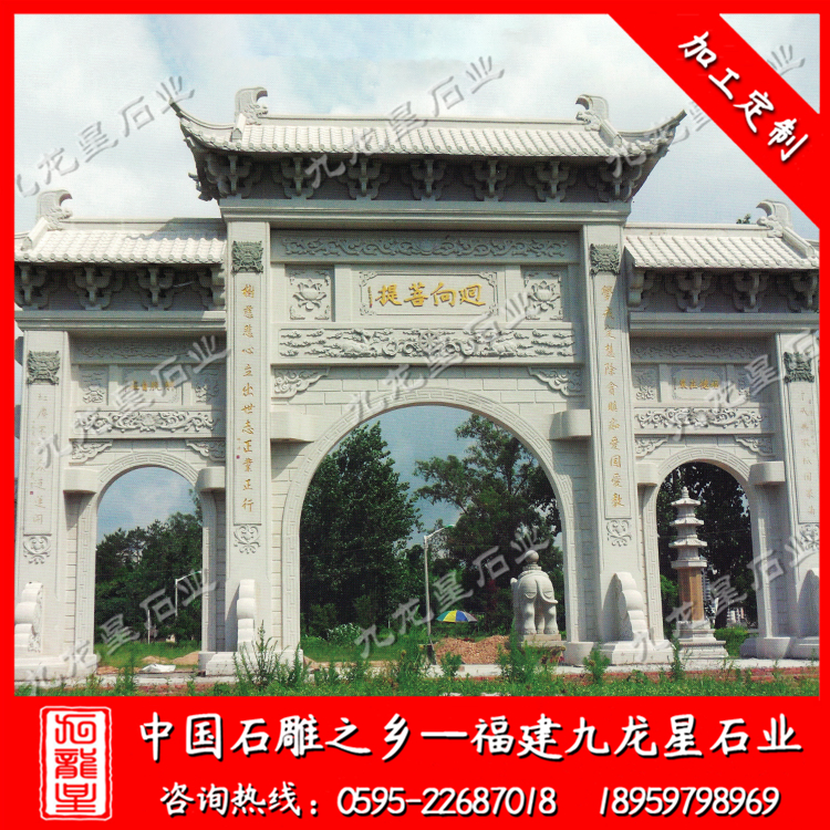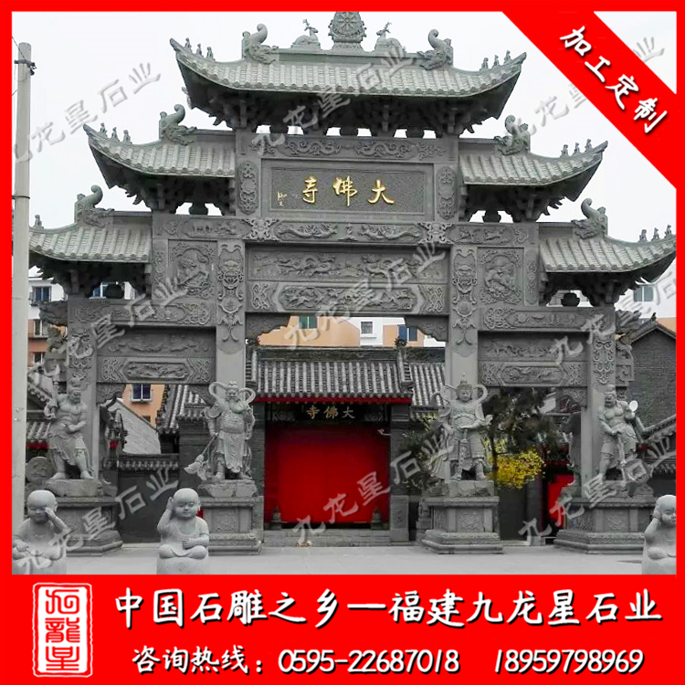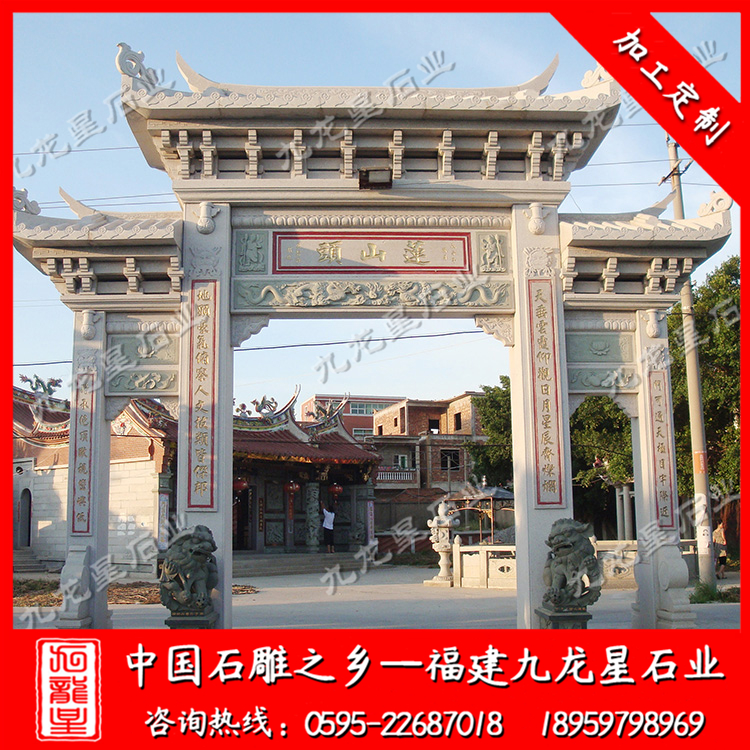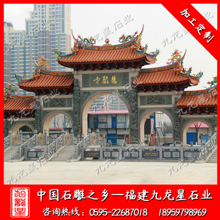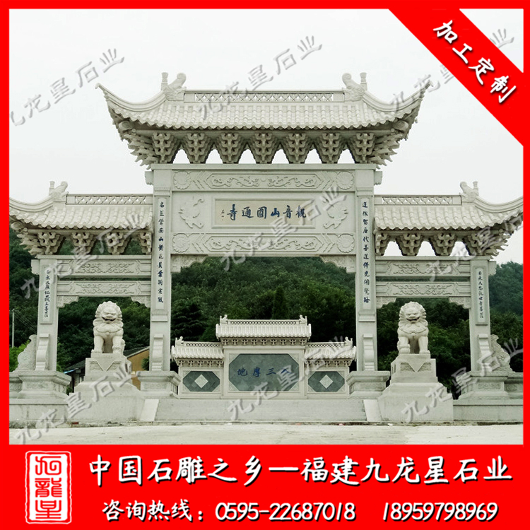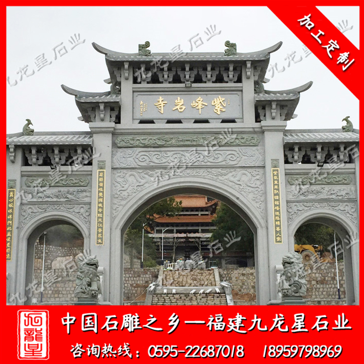 石雕牌坊(寺廟石雕山門牌坊 福建石雕牌樓定制)——九龍星石業