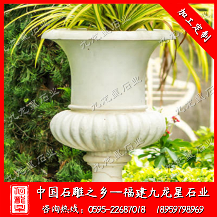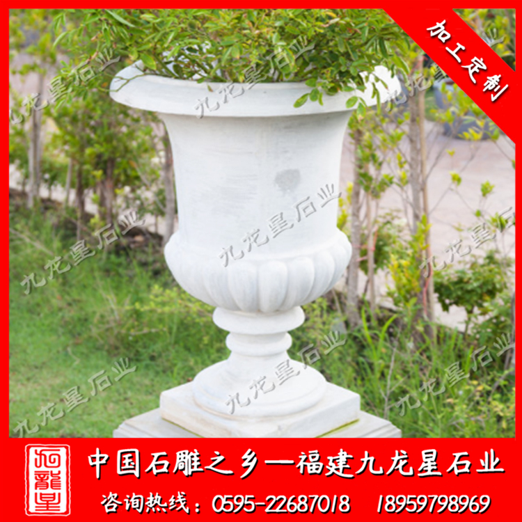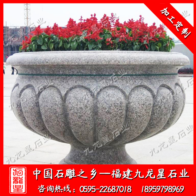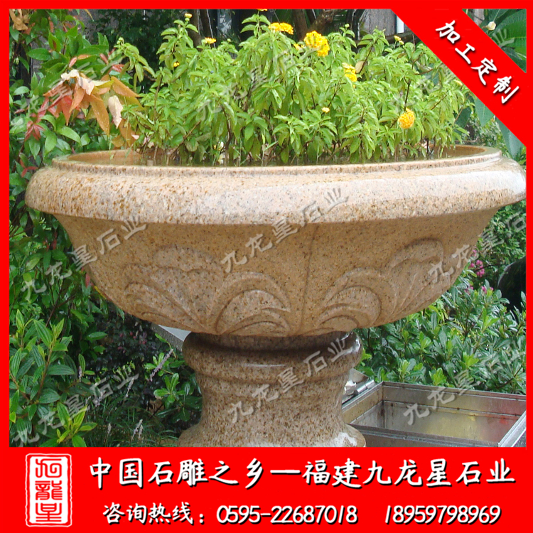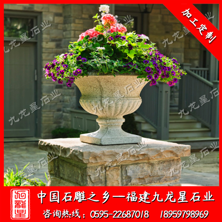 石雕花缽(室外石雕花缽 歐式造景花缽 天然石雕花盆)——九龍星石業