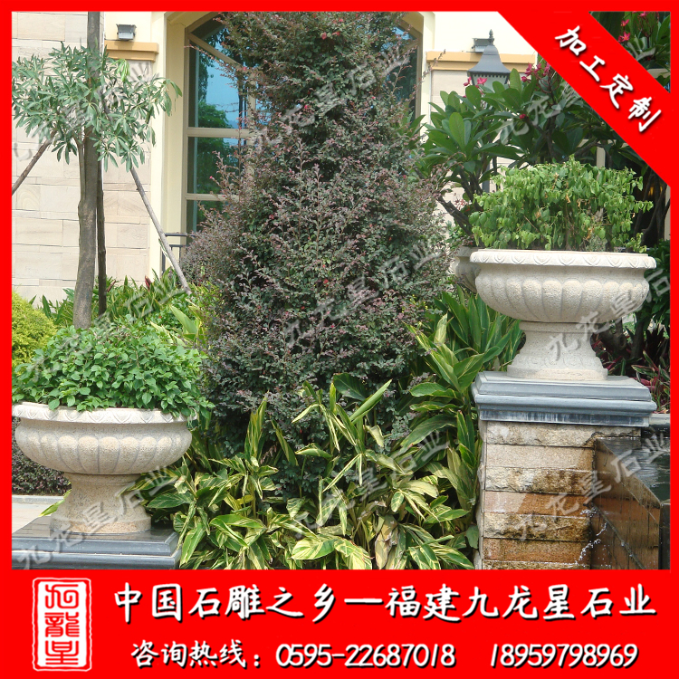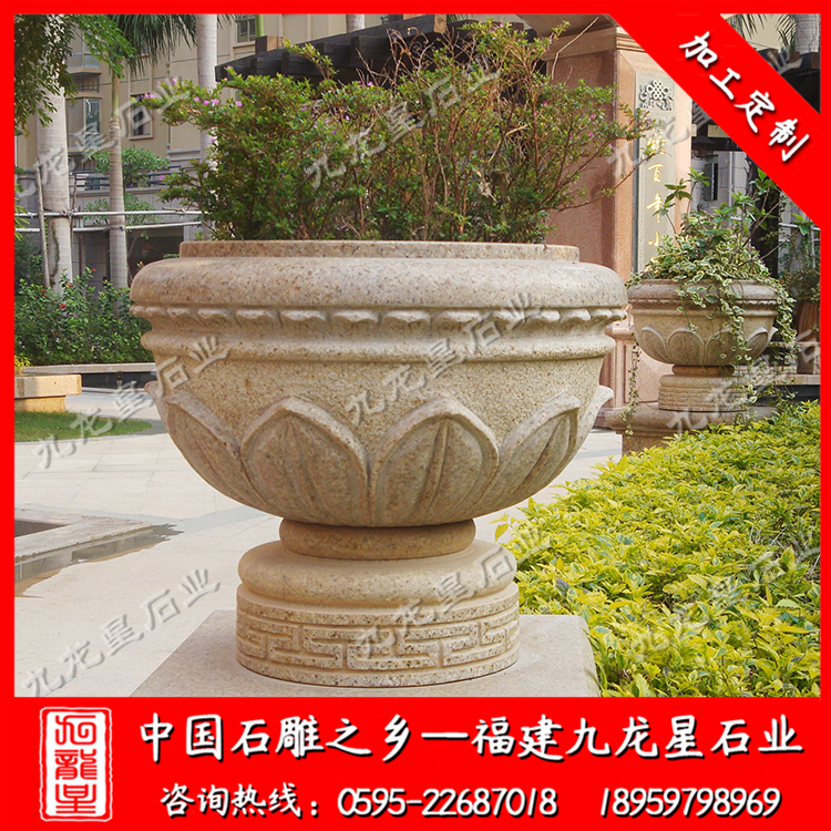 石雕花缽(石雕花缽多少錢 園林景觀庭院花缽)——九龍星石業
