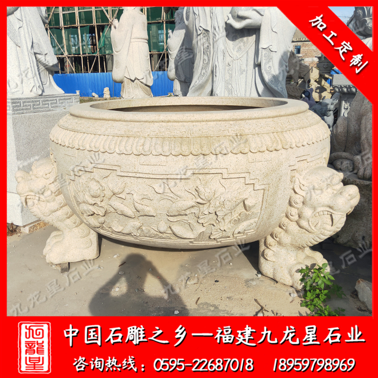 石雕花缽并不是越貴越好,還要考慮很多因素,例如:顏色、規(guī)格、花缽的形狀、花缽?fù)獾幕y等等,花缽的形狀也是多樣的,有圓形,方形,多邊形。要根據(jù)周圍的環(huán)境和種植的花進(jìn)行選擇,一般的石雕花缽會種一些較低的花,花的顏色較艷麗,艷麗的花搭配復(fù)古的石雕花缽很是美觀,低的植物并不會蓋住石雕花缽,也能充分的發(fā)揮石雕花缽的裝飾作用。