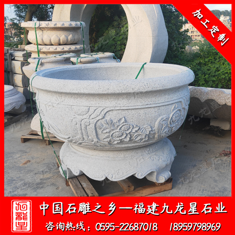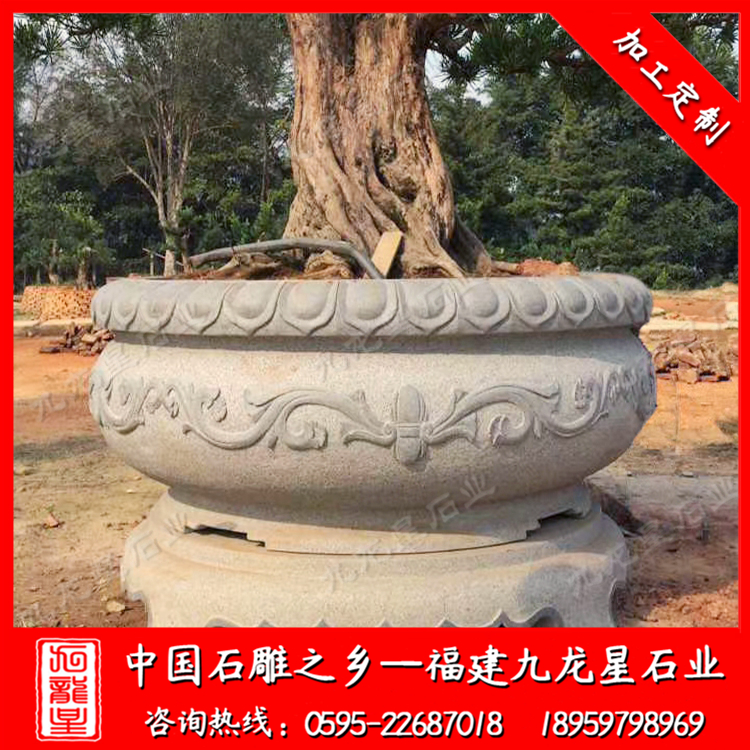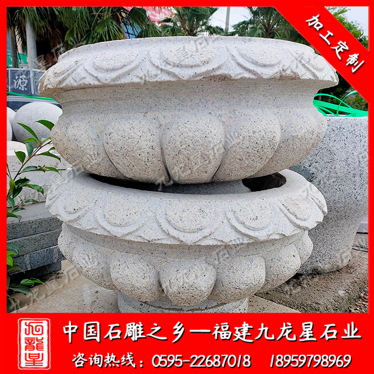 石雕花缽(石雕花缽現(xiàn)貨 花崗巖花缽 園林花缽雕塑)——九龍星石業(yè)