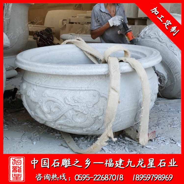 石材花缽由于經(jīng)過雕刻工藝的加工,造型美觀大方,并且不容易損壞,使用壽命長,越來越受到人們的青睞。石材花缽也稱之為石雕花缽,因?yàn)橛檬闹谱鞯幕ɡ彾疾捎昧舜罅康氖窆に嚕够ɡ彽恼w外觀更加精美大方。