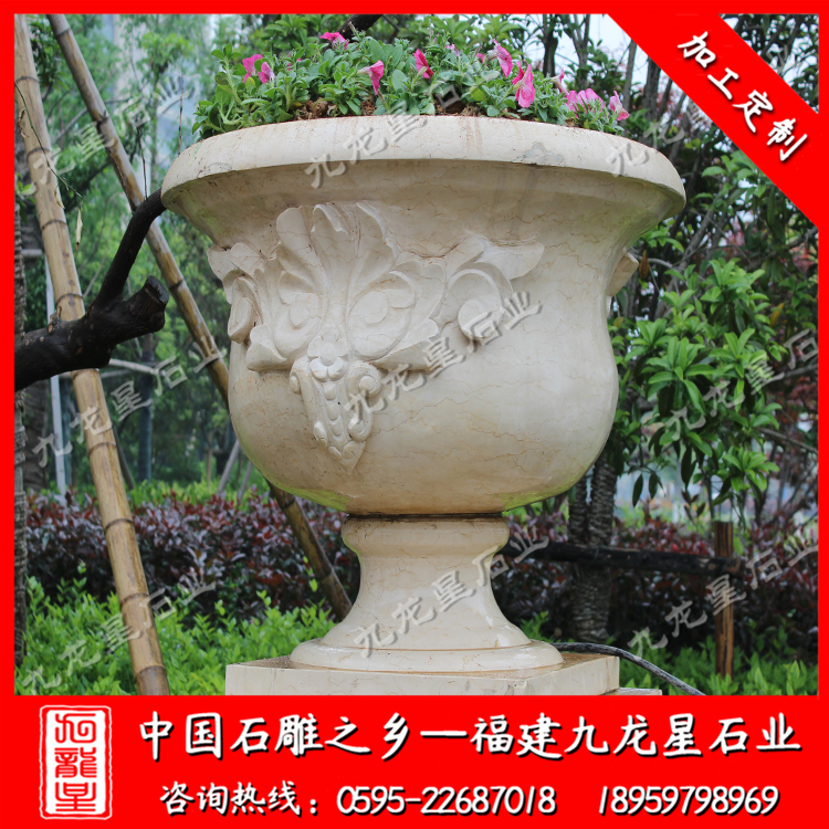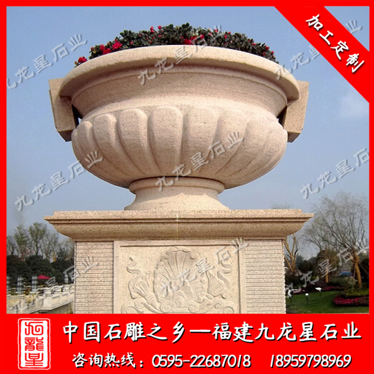 石雕花缽(房地產(chǎn)石雕花盆 歐式花缽 加工石材花盆)——九龍星石業(yè)