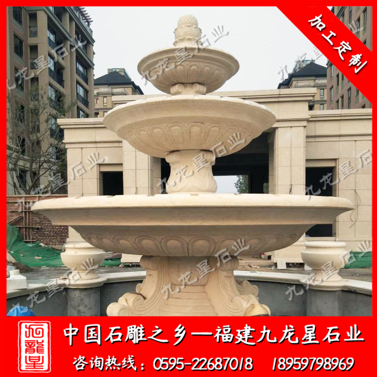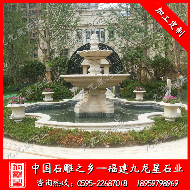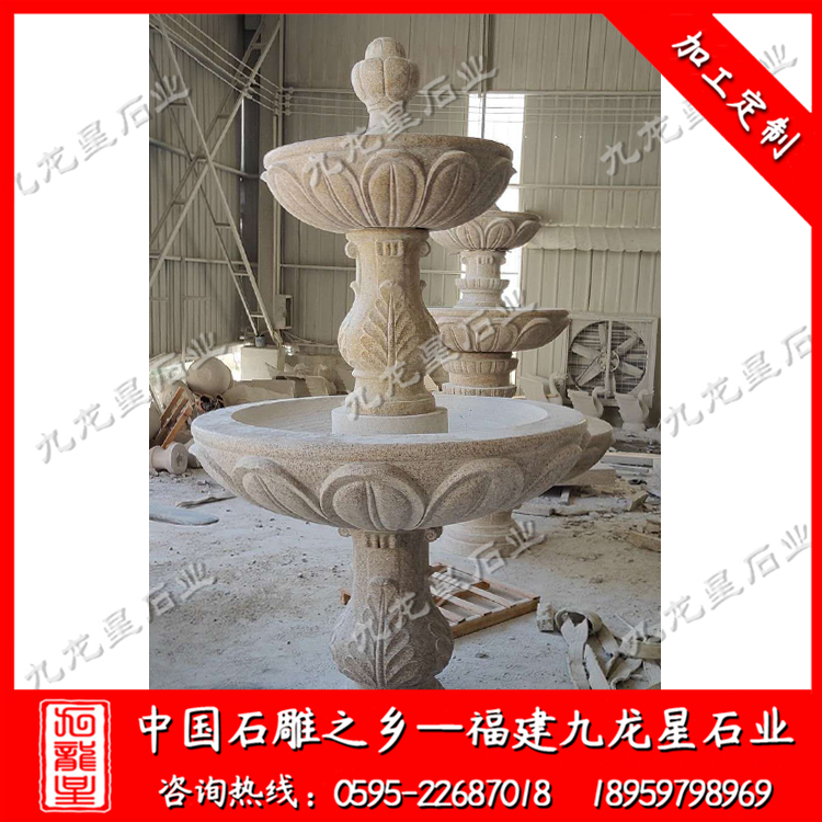 石雕噴泉的浮雕花紋一般都是噴泉為經(jīng)典的地方,也是吸引人的地方,石雕大師們一直在琢磨更為經(jīng)典的圖案,如何加工出更適合噴泉外表花紋的樣式成為人們對(duì)石雕噴泉的一個(gè)非常期待的東西。目前噴泉的花紋大部分采用的是歐式花紋樣式,但隨著我國石雕行業(yè)的發(fā)展,噴泉上多了許多精美的中式元素。底座上,歐式的建筑大多都是波浪形的花紋和螺紋狀的漩渦形態(tài),類似羅馬柱的裝飾花紋,向日葵等。中式噴泉底座大多采用祥云立體圖案,我國鼎器的支腳圖案,梅蘭竹菊等花朵,蟾蜍、貔貅等都是底座雕刻的花紋類型。
