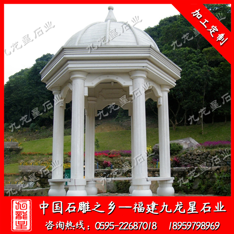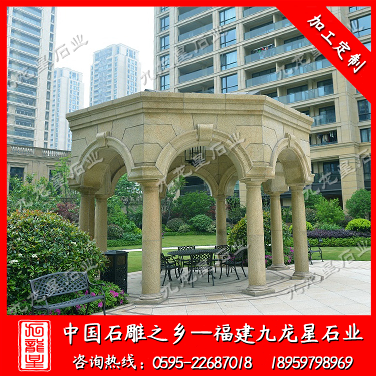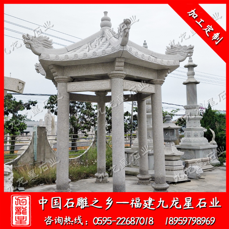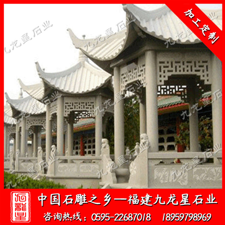 石雕涼亭(園林景觀石雕涼亭 中式六角涼亭圖片)——九龍星石業(yè)