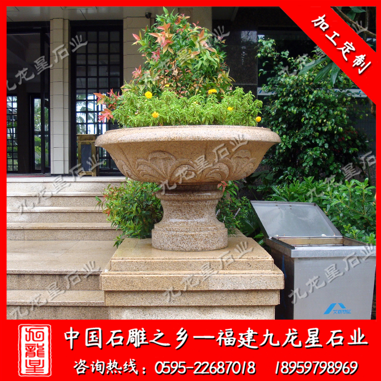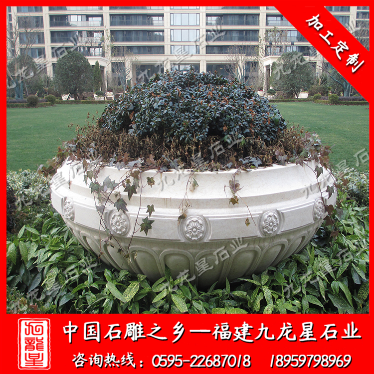 石材花缽在環保綠化的過程中起到了舉足輕重的作用。隨著時間的推移、社會的發展,城市建設越來越重要,城市的美化也越來越有特色,越來越個性化。美化環境時,可根據缽、盆樣式、大小的不同,進行多種多樣的藝術組合。組合的形式可以是幾何式、自然式、混合式、集中布置、散置等,具體布局形式要由美化地點的具體情況決定。由于其裝飾美化簡便,被稱作“可移動的花園”。這些花缽靈活多樣,隨處可用,尤其對于城鄉建筑比較密集和其他一些難于綠化地區的美化有著特殊的意義。