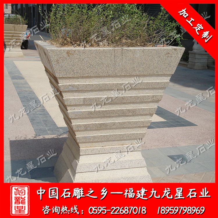 石材花缽,不僅僅是為了美化環境而建立,它的存在,還體現了這個城市的精神面貌與城市的文化建設。近年來,一些大型廣場、繁華鬧市等特殊地段,由于實施黃土不露天工程,因此這類地段的綠化美化大多通過使用各類花缽來實現。在街頭,三三兩兩的花缽,一字排開,花缽內,各色的時令花卉栽種其間,通過定期地澆水、施肥、養護后,便收到了不錯的景觀效果。